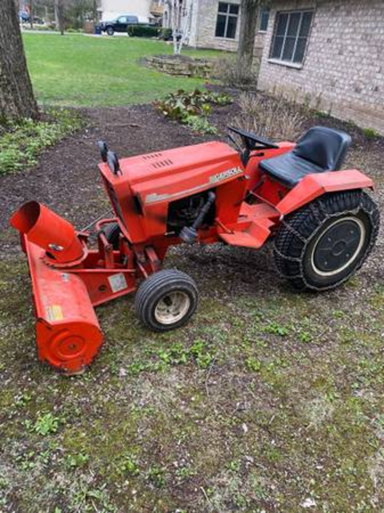 Case 448 Gardent Tractor with snow chains, 48” snowblower and mowing deck. Everything works as it should. Selling because I upgraded. $800 obo.