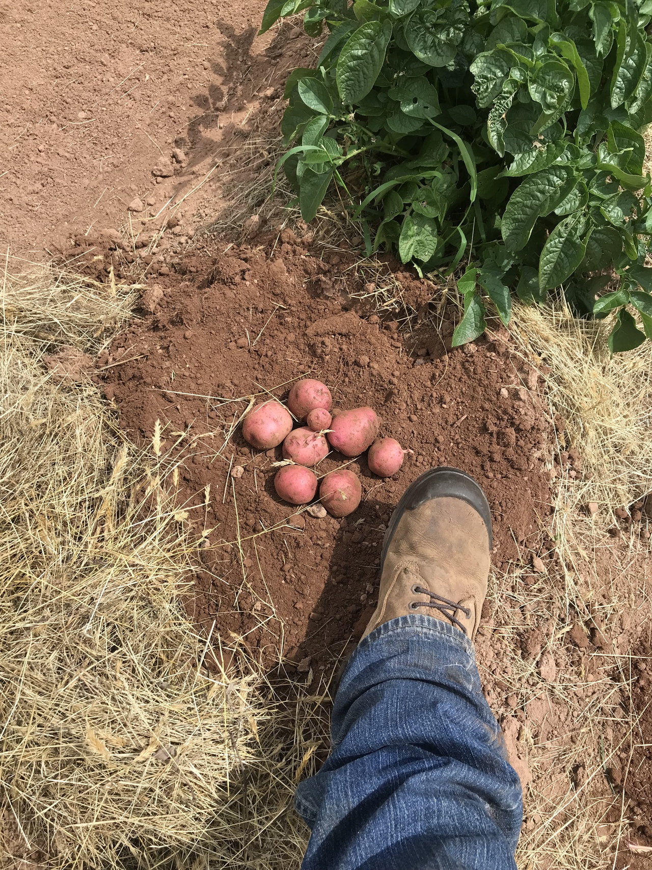 Woo hoo. Fresh potatoes today. And red ones at that. One plant.