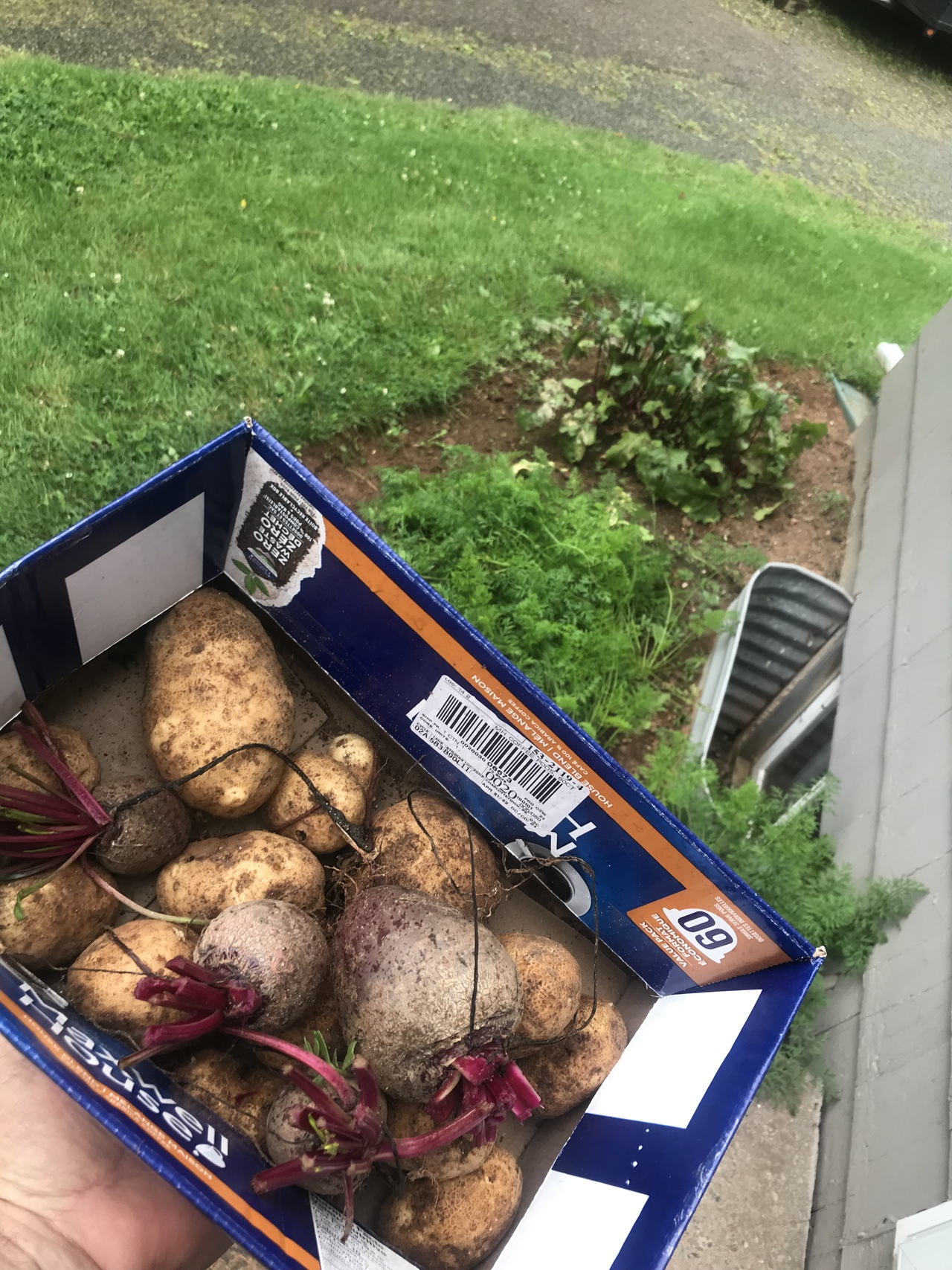 So. Still a few potatoe bugs around. So killed them today. All the row of red potatoes are dug out over the last while. Hoping for some potatoe salad from my sister in law. Had some carrots, tomatoes, yellow beans and snow peas from her garden the other day. Some tasty right out of the garden to snack on while your doing work. And she gave me beets to take home.