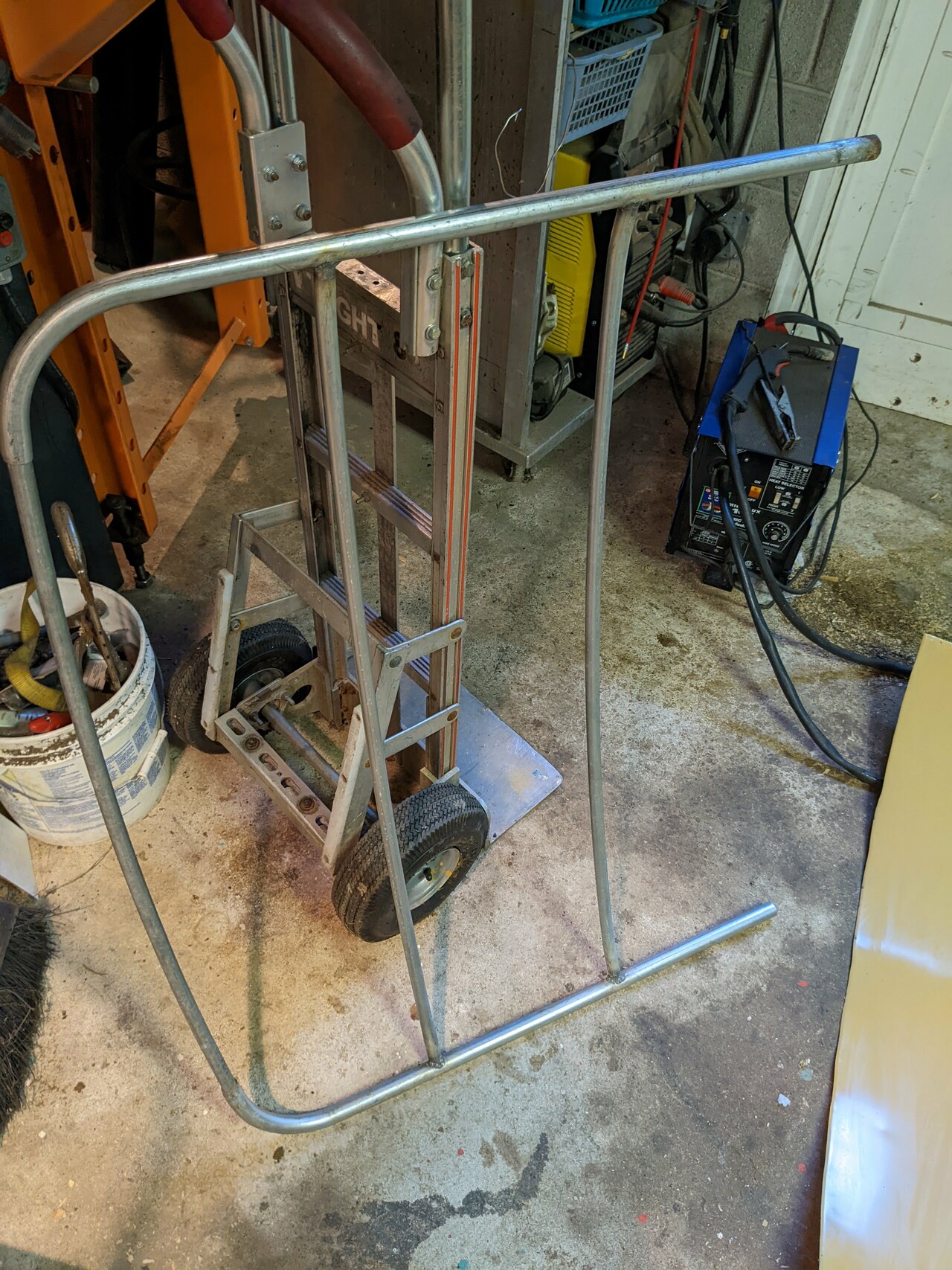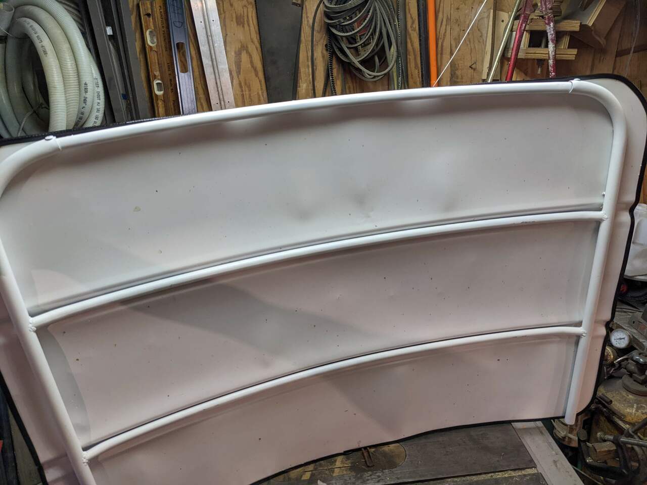 So I ran some 1/2" EMT conduit through the pipe roller and gave it the desired arc. And then cut and welded that into a frame.