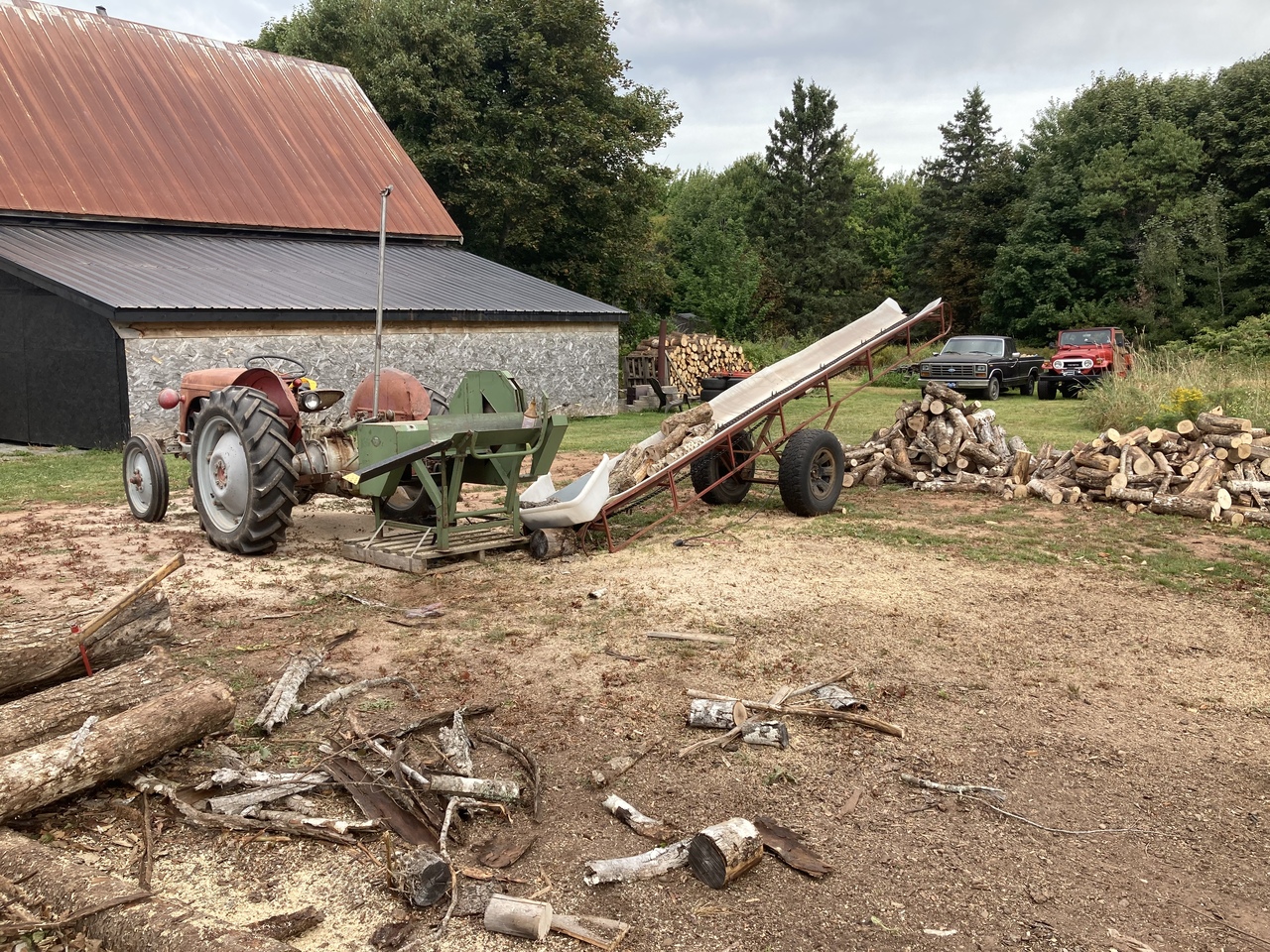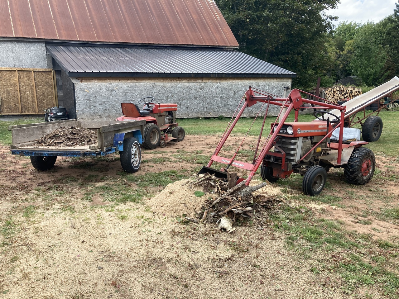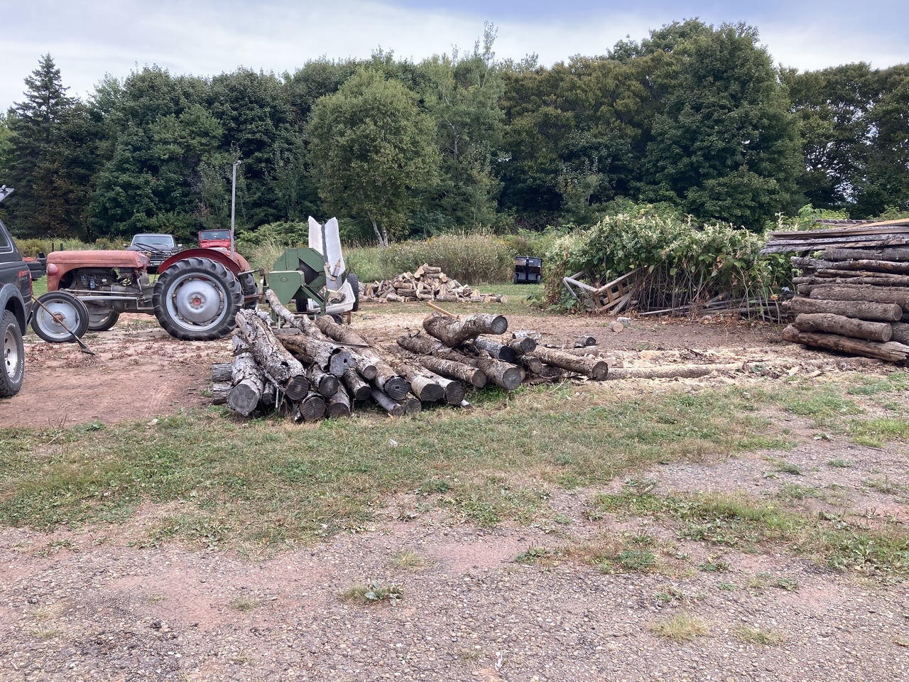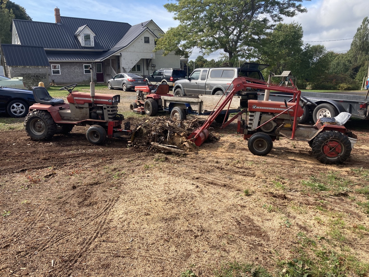 Sorry, no Case tractors were used in this operation. Another clean up day in the wood yard with the MF garden tractors. And moved the Ferguson tractor with saw bench and the escalator to its new wood cutting spot.