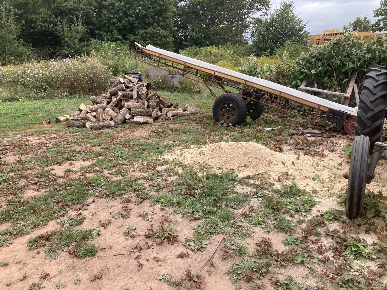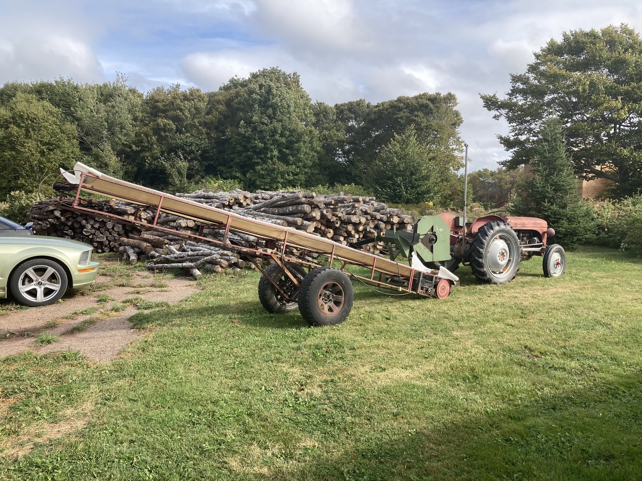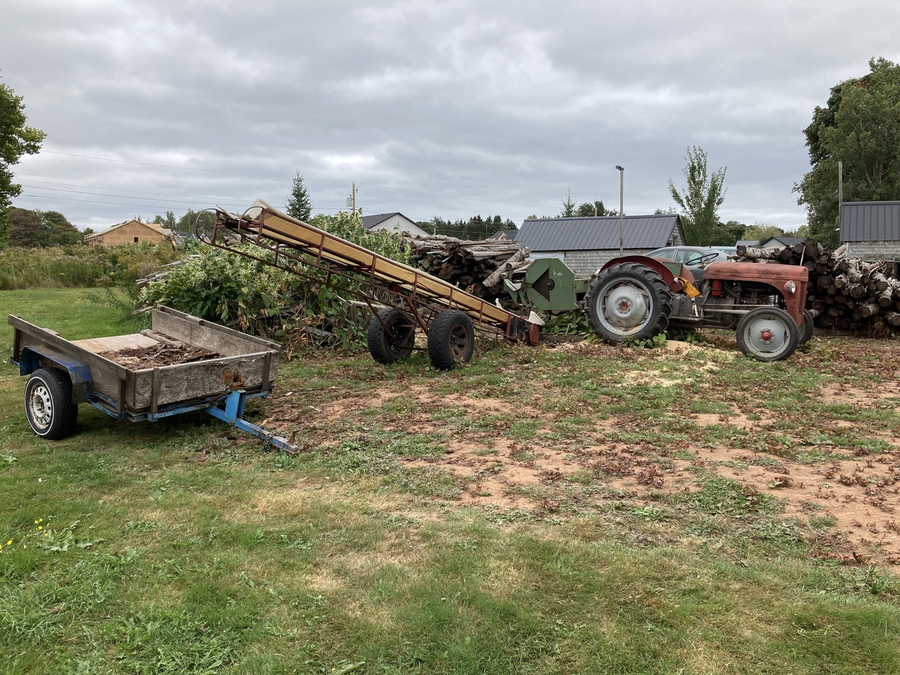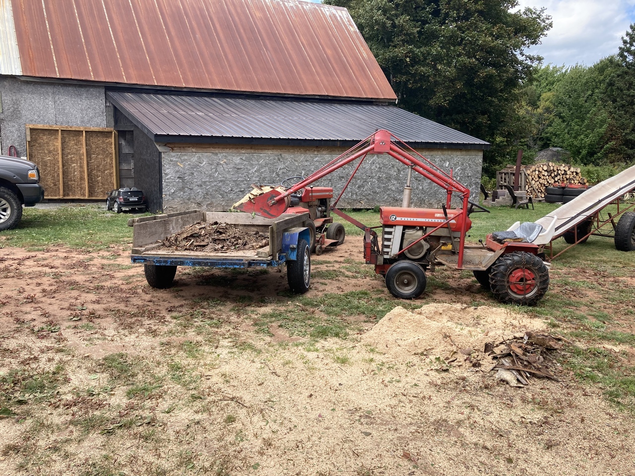 Sorry, no Case tractors were used in this operation. Another clean up day in the wood yard with the MF garden tractors. And moved the Ferguson tractor with saw bench and the escalator to its new wood cutting spot.