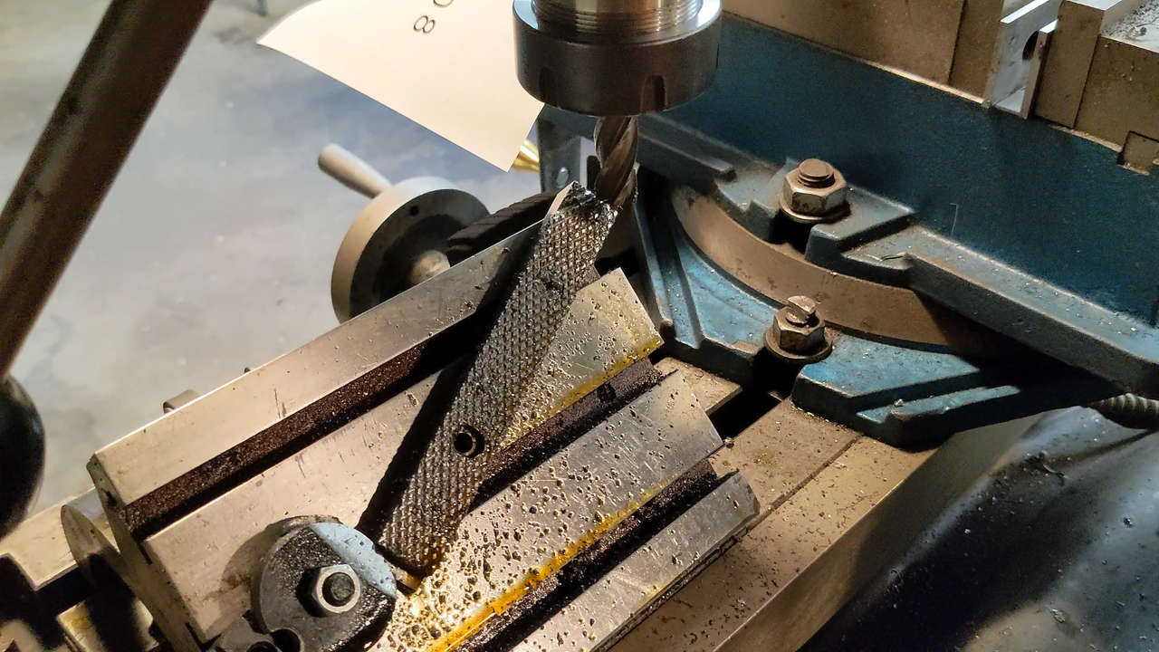 Then I drilled and counterbored the mounting screw holes to match the existing jaw.