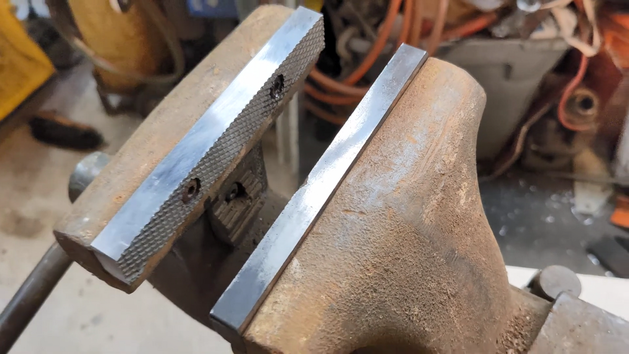 I mounted the new jaw insert on the angle table at that angle. The upper portions is bolted down through the mounting screw hole, and the other end is clamped down to the step/tab I left for that purpose.