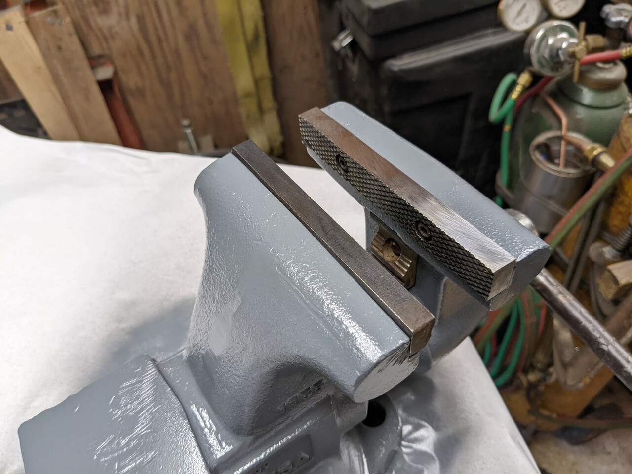 I picked up a 5 1/2" Wilton Tradesman vise for $50, which I consider an incredible price. It's a step below a Wilton Bullet, and those are the holy grail. This one is similar to a Bullet, but were sometimes sold as a Wilton, other times as a Snap-On. It opens to something like 8", and has nice pipe jaws. It's a very nice vise.