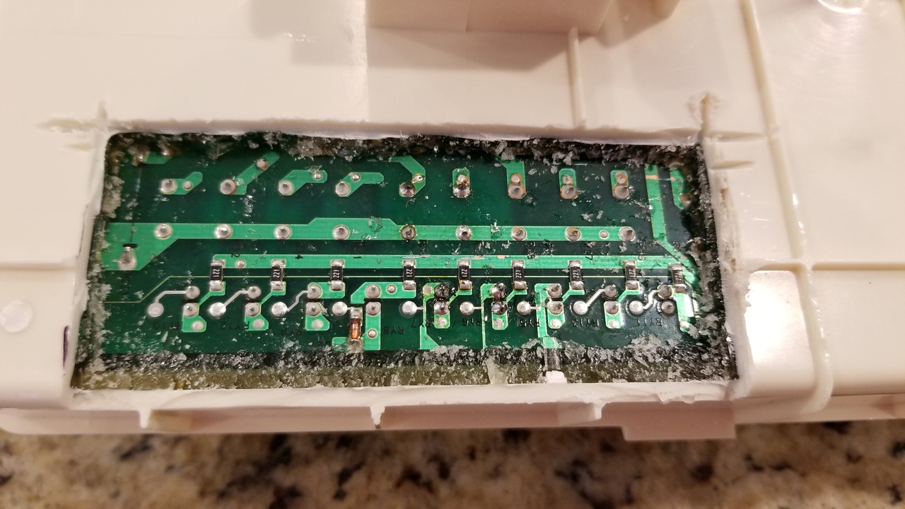 Anyways the relays are the block boxes on the top left. I had to dremel the rear cover off and remove the silicone potting material to do the repair. After testing I did silicone it back up.