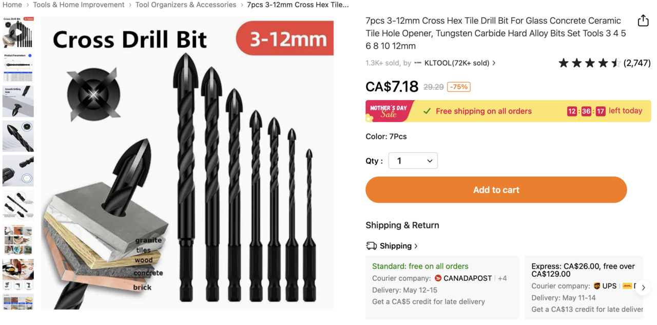 Edit: sorry about the whole temu.com thing, I'm not recommending the site/business to anyone, just wanted to point to the drill bits I got. Looks like the exact same thing is available on amazon.com