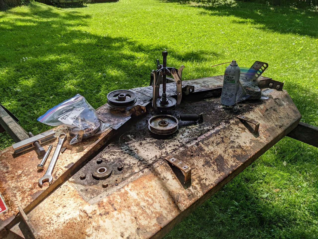 Cover off - belt was ok, but some of the spindle bearings need replacement