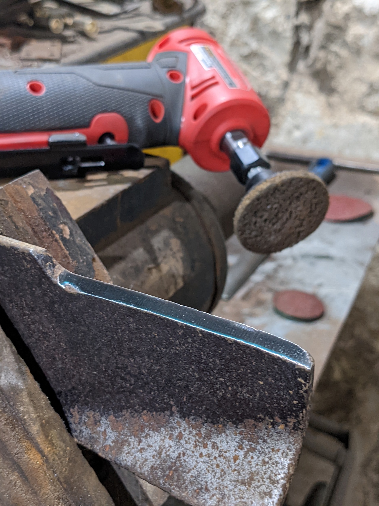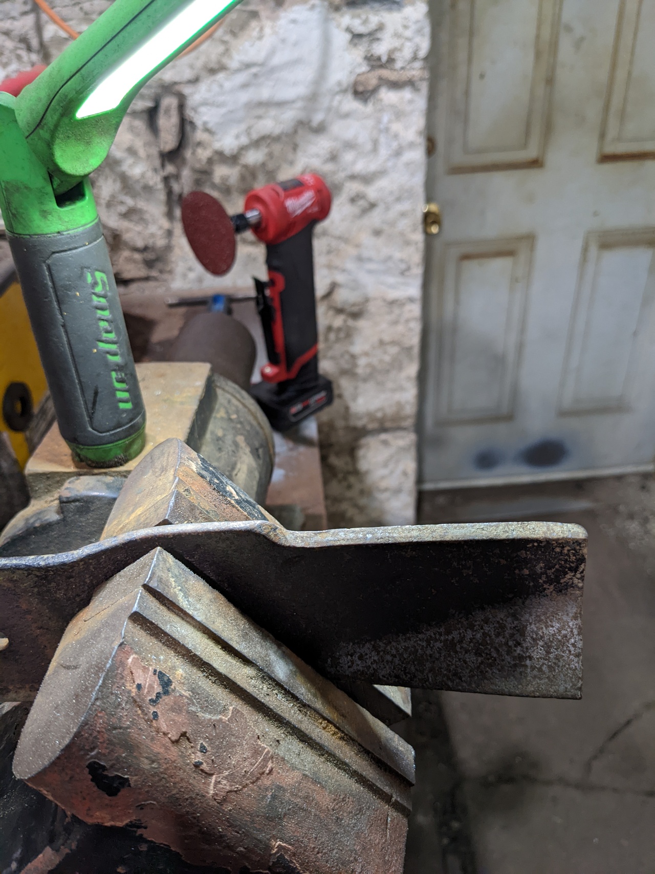 Mower blades in the vice to give them a bit of an "edge" before some fresh black rust paint