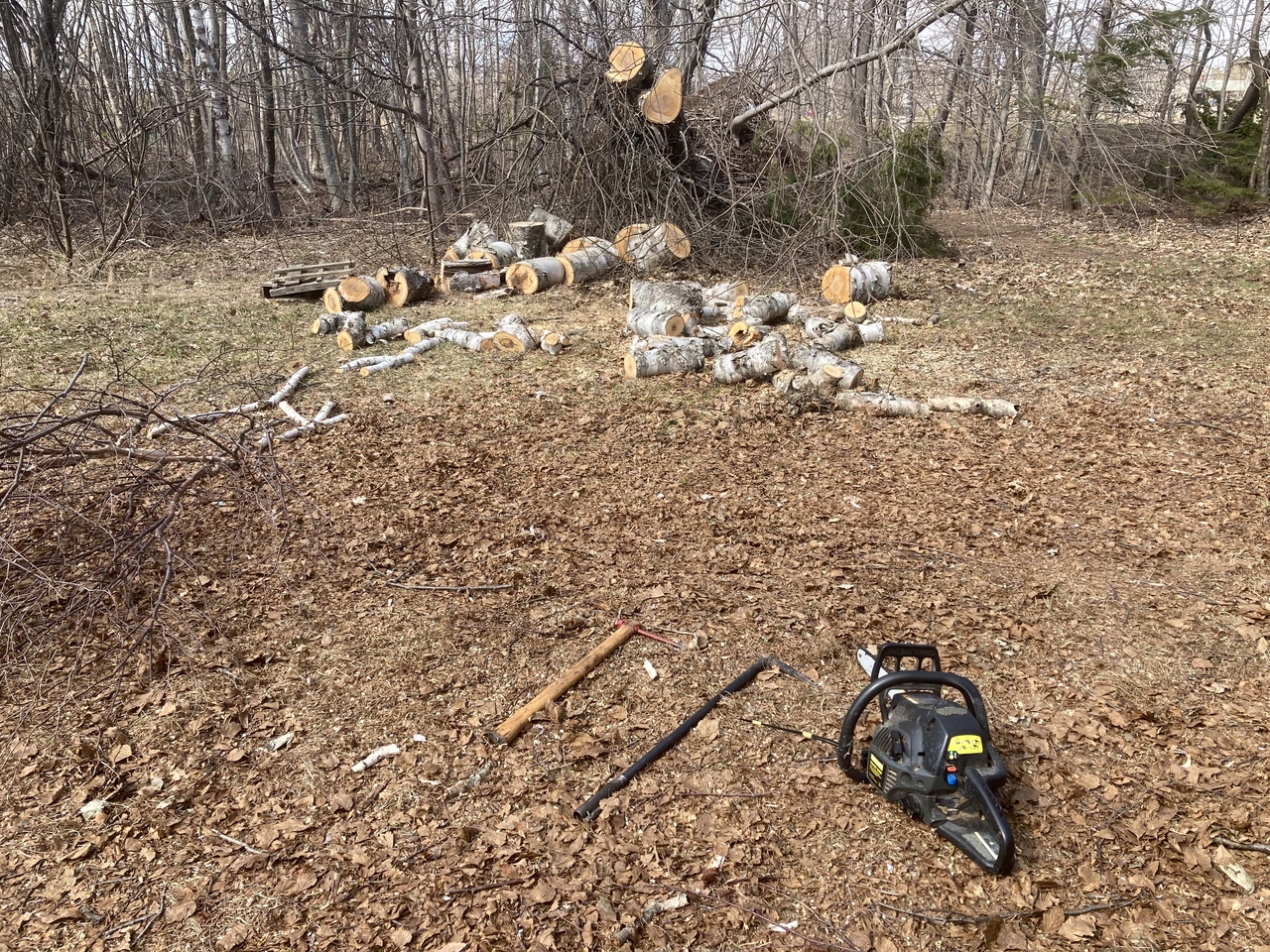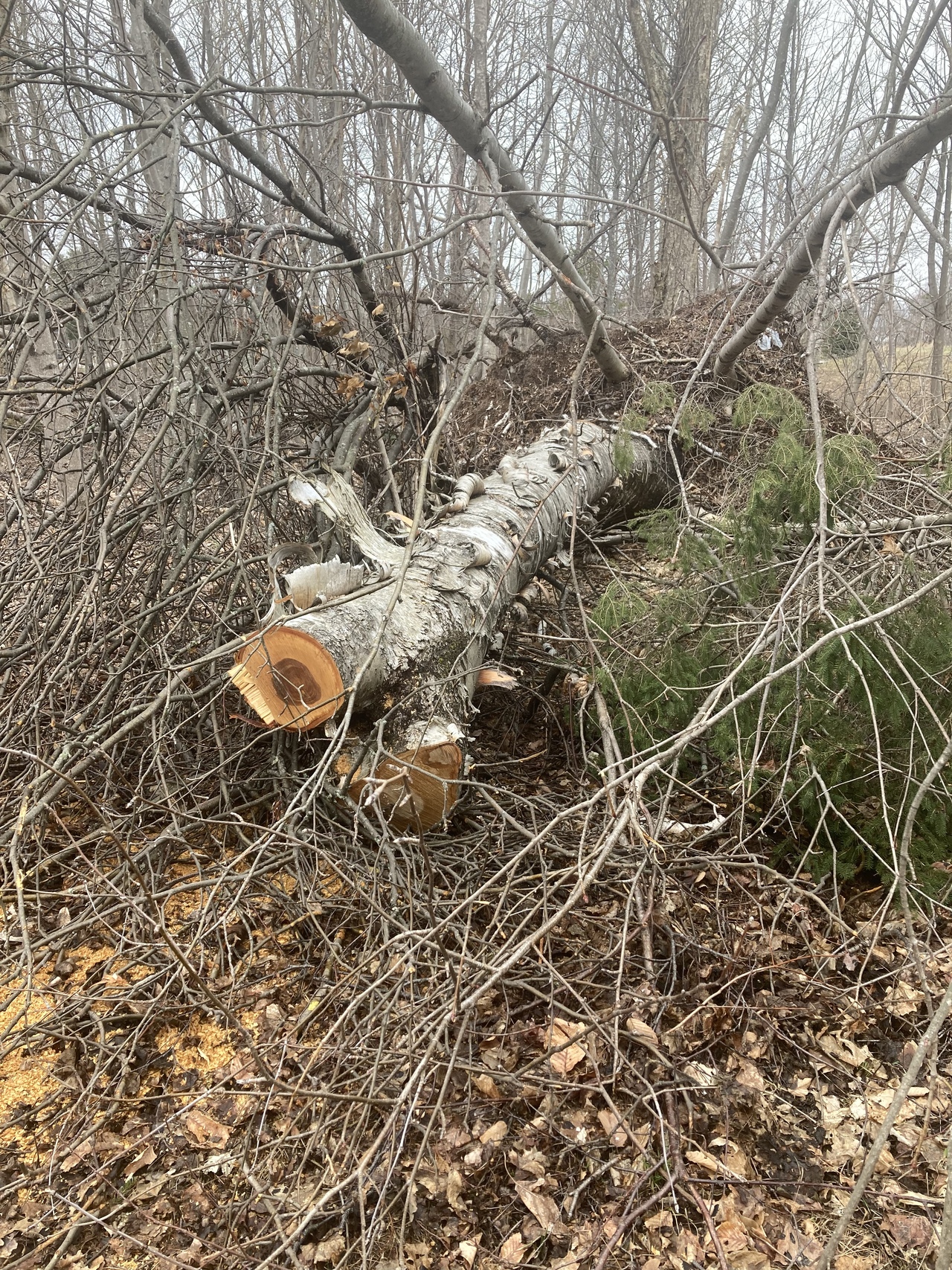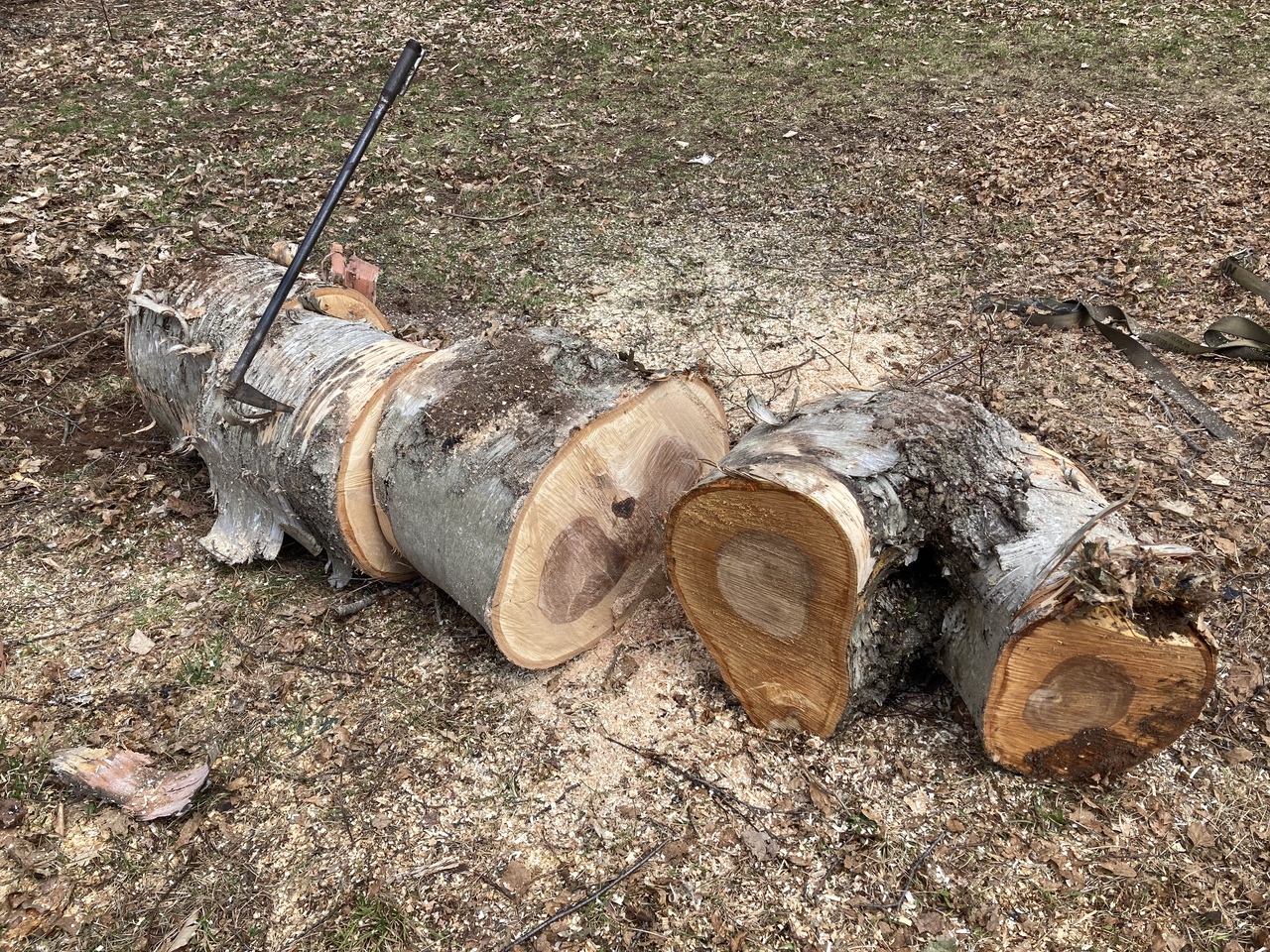 Little more done today on the birch tree. It is slowly getting shorter. Just the big trunk to do now. Not sure how long it is. But it’s about 20” to 24” in diameter.