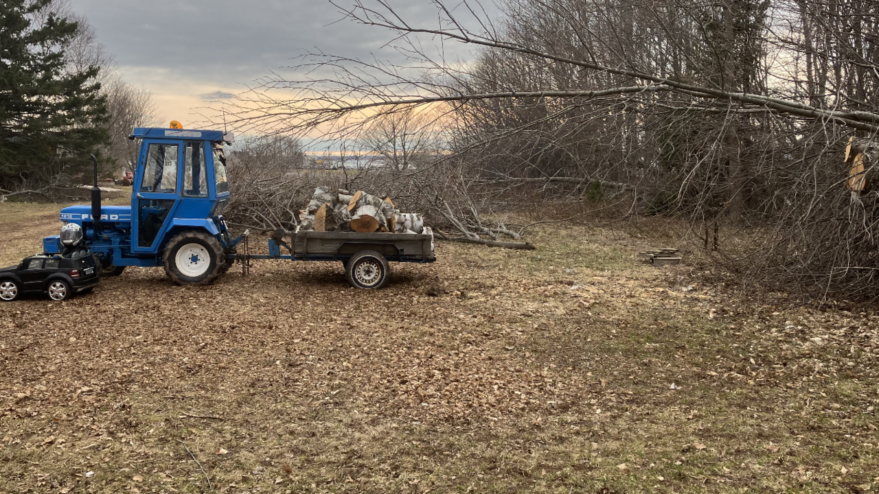 Son and grandson picked up the wood, this evening, I cut off the birch tree today. That’s a great help.