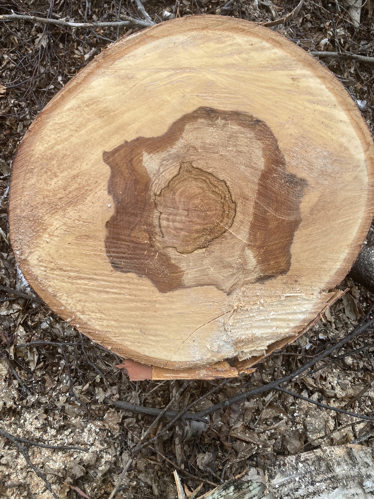 Trunk measured at 21”. Could not count the rings couldn’t see them. Tree was trying to supply water to its self. Was just a dripping at the last cut. Each round I figured about 175 lbs. Internet calculator. Just a guess.