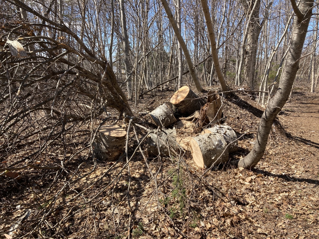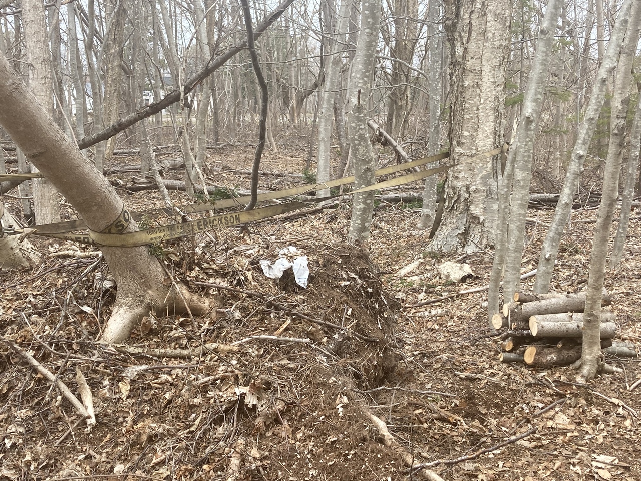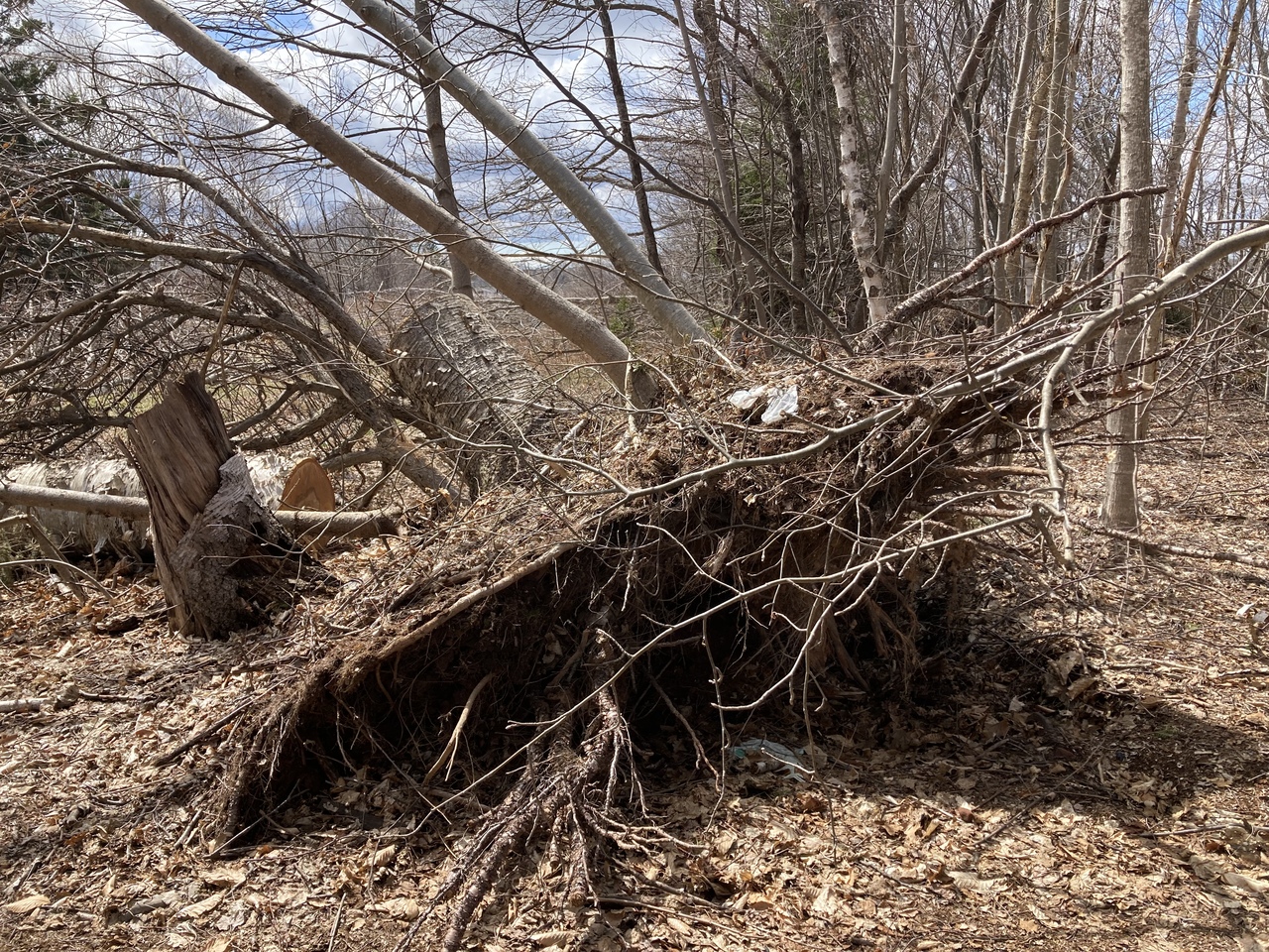 Birch trunk all cut up today. And once I got the truck off noticed the maple trees started going back up. Root was almost up at 90 degrees, now after a few hours it back down to about 30 degrees. I doubt the maple trees will stand up straight, but as things settle more and they start to grow, they may not be to bad.