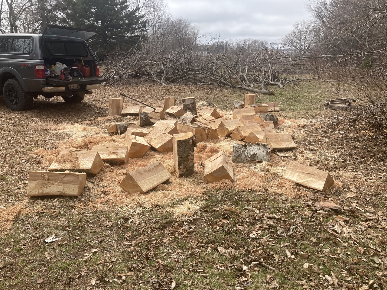 I have a few Boxelders like that to do. But started small with the lilacs and honeysuckles that busted off in the wet sticky snows, most of it went threw the chipper and got spread on the flower beds.