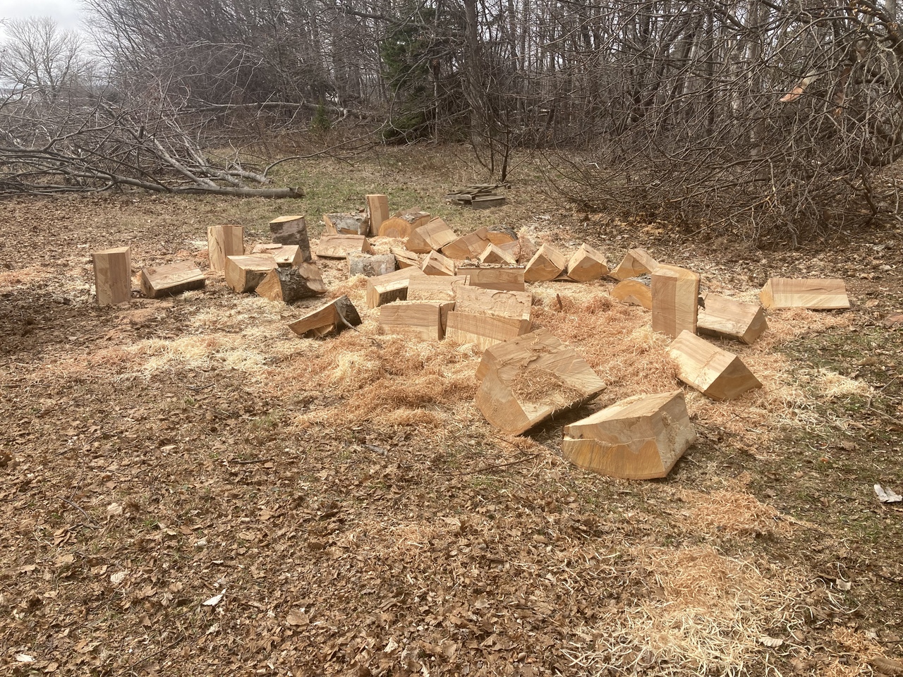 There now. All cut up into bite size pieces. Hehe. Well at least now I should be able to pick them up. Maybe. Loose a lot of wood in sawdust.