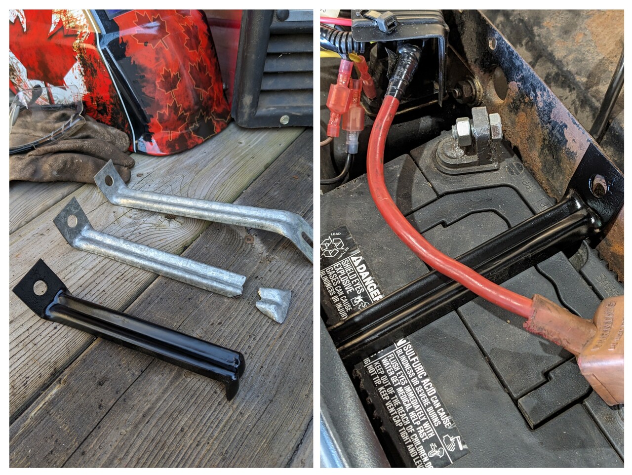 Battery hold down... It's been really warm and sunny the last few days here so I've been spending a little more time working in the BigSky Shop™ Was getting ready to button up Maxine and kick her out of the tent garage and I remembered she didn't have a hold down for the battery - in fact all of my 3 Case/Ingersoll tractors have loose batteries just hanging out - waiting for a big bump to see if they can hit the underside of the hood.