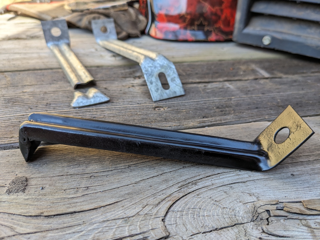 I found some misc brackets in my Dad's collection of treasures lately and figured with a little modification they would look like factory original parts... Finished one for Maxine yesterday, and I'm making a 2nd for Max today...