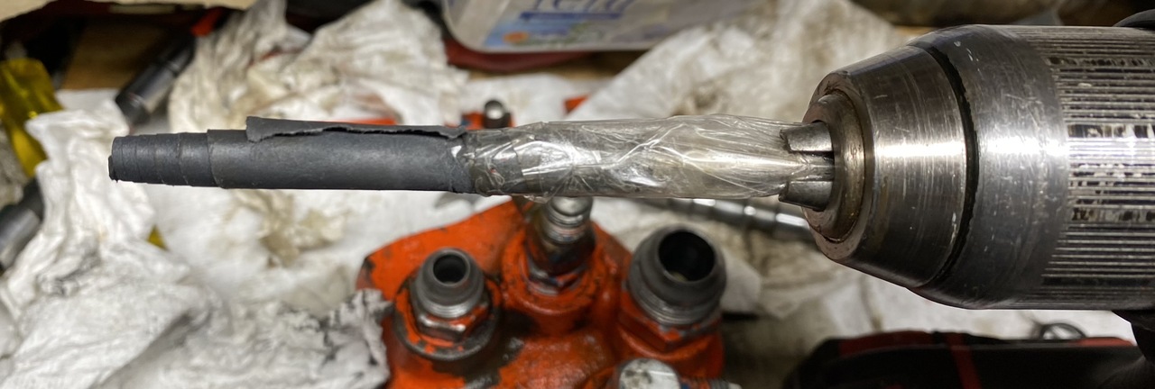 Used this contraption, 600 grit paper rolled thick and taped on a steel pin, to polish the inner surface of the valve body top and bottom for the spool that has the o-rings on the spool.