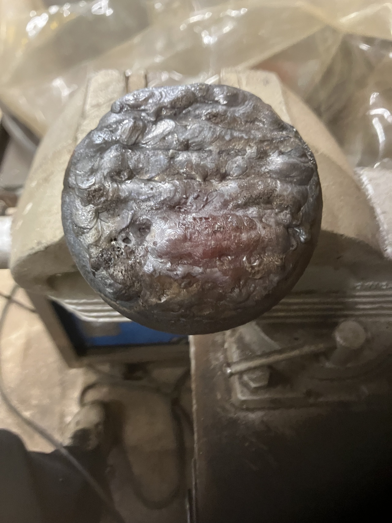 I am slowly making progress on the blade. Today I straightened the one skid that was bent. I noticed the bottom of both skids were very worn. So I first built up the bottoms with low carbon wire by tig welding stringer beads across the surface. Then I welded stringer beads using a hard surfacing rod that is for abrasion. The surfacing electrodes were for stick welding, so I took a hammer and knocked off the flux. Then used them with the tig welder. Painted them which are drying by my wood furnace. Should be ready to bolt on tomorrow and mount the blade on the 444. These should last my lifetime.