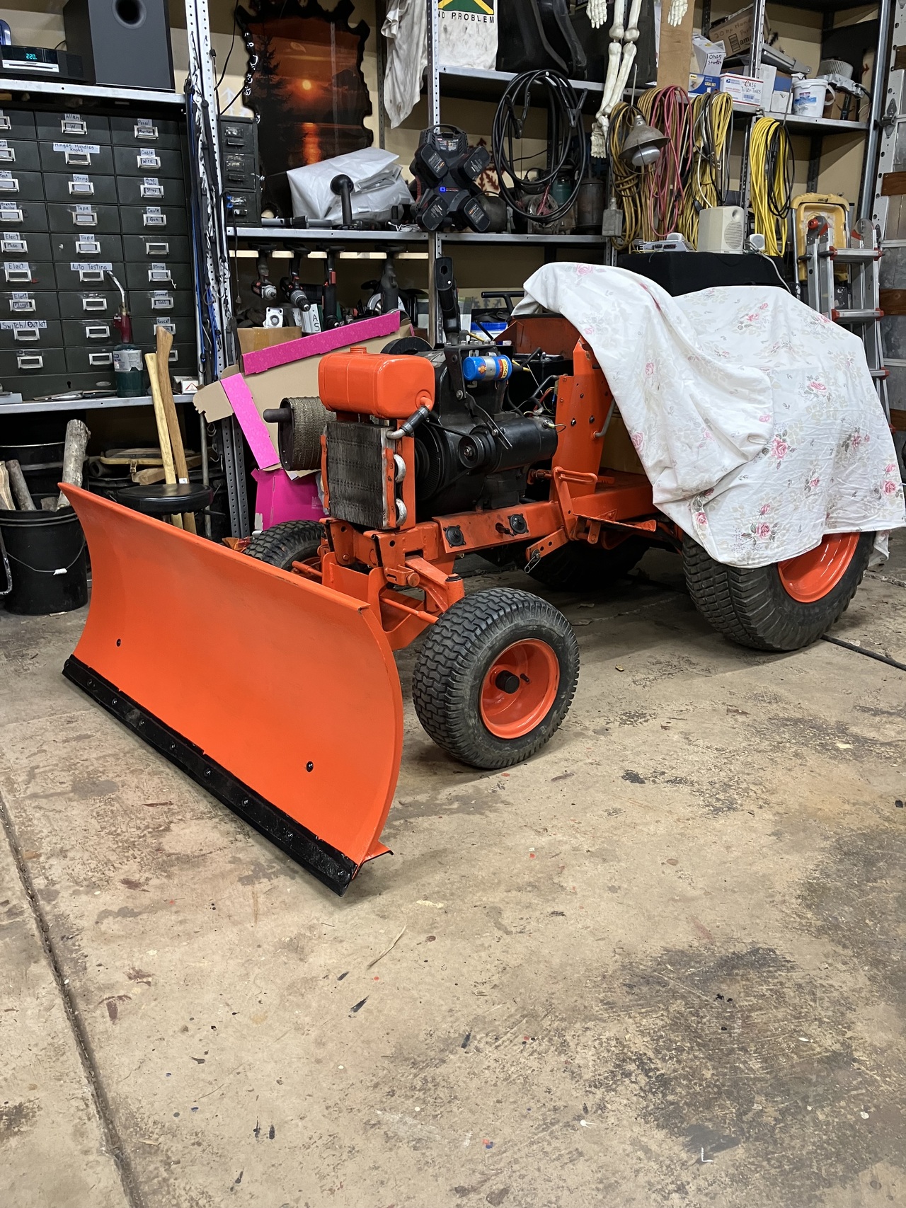 I wired up a ammeter on the 444 today. I never liked the generator light. I forgot to take a pic of it. Checked over the wiring since the battery was out. Buttoned it all up and the K321 fired right up with a shot of starting fluid. Then decided to attached the utility blade. All went well until the lift arm was MIA.