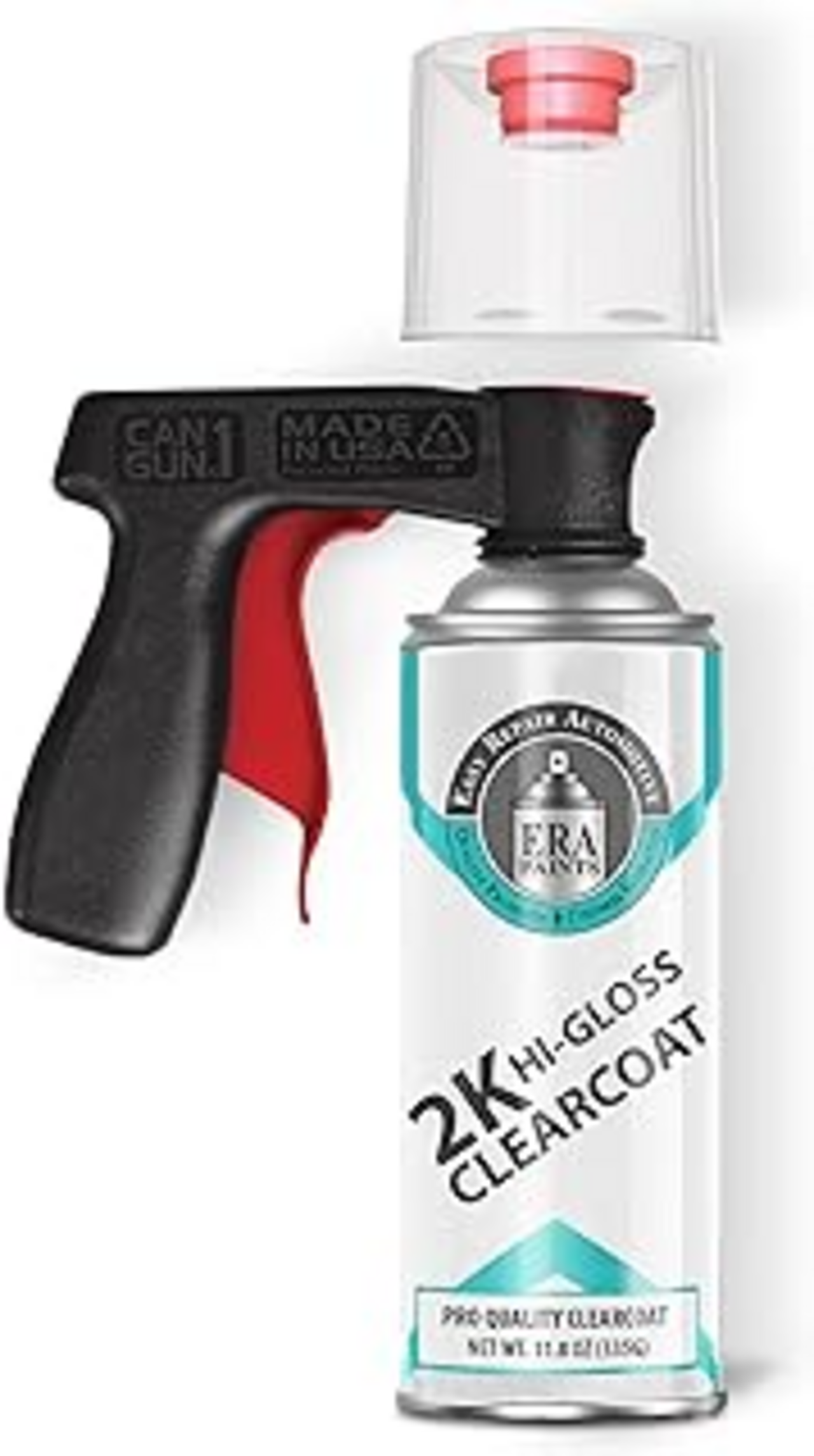 The can is a mostly white can with large Blue letters say 2X and there is a description of what it is. If it doesn't have the red button in the clear cap, it isn't the correct one. I was going to take a picture of it and tie the picture to this post, but apparently I have used all of mine up. Practice a few swipes before you go full boat. When you final coat your color desired, come back with this clear coat while the the color coat is still wet. Then use a second coat of the clear 10 minutes later. Takes a slight bit of practice, but less so that that final color coat.