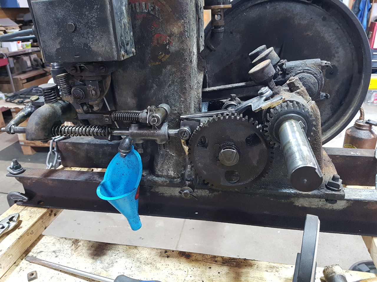 our grandson being a teenager is not interested in that rusty old thing . For now anyways . I can tell you that I have gone through all the cam and gears for the valve and magneto timing . Now just trying to get 228 degrees of total timing and then I can make sure the gears are inline as there is no marks, but they do give when the exhaust valve is to open and to close . The intake valve has just a light spring is basically just a one way check valve.