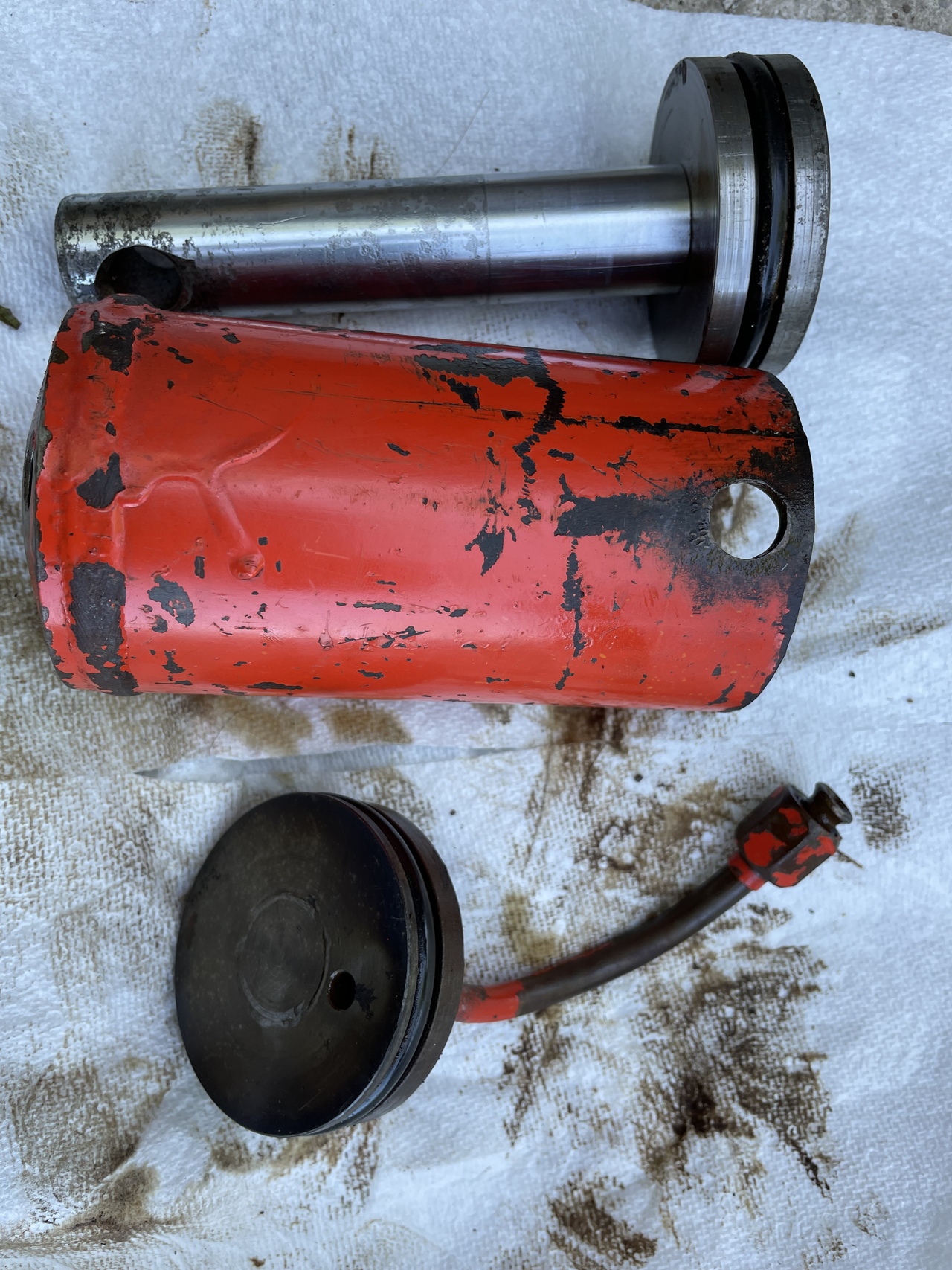 . If you had a cylinder hone maybe you could polish up your parts cylinder. Your rod looks to be in great shape. A hydraulic shop might have o rings locally.