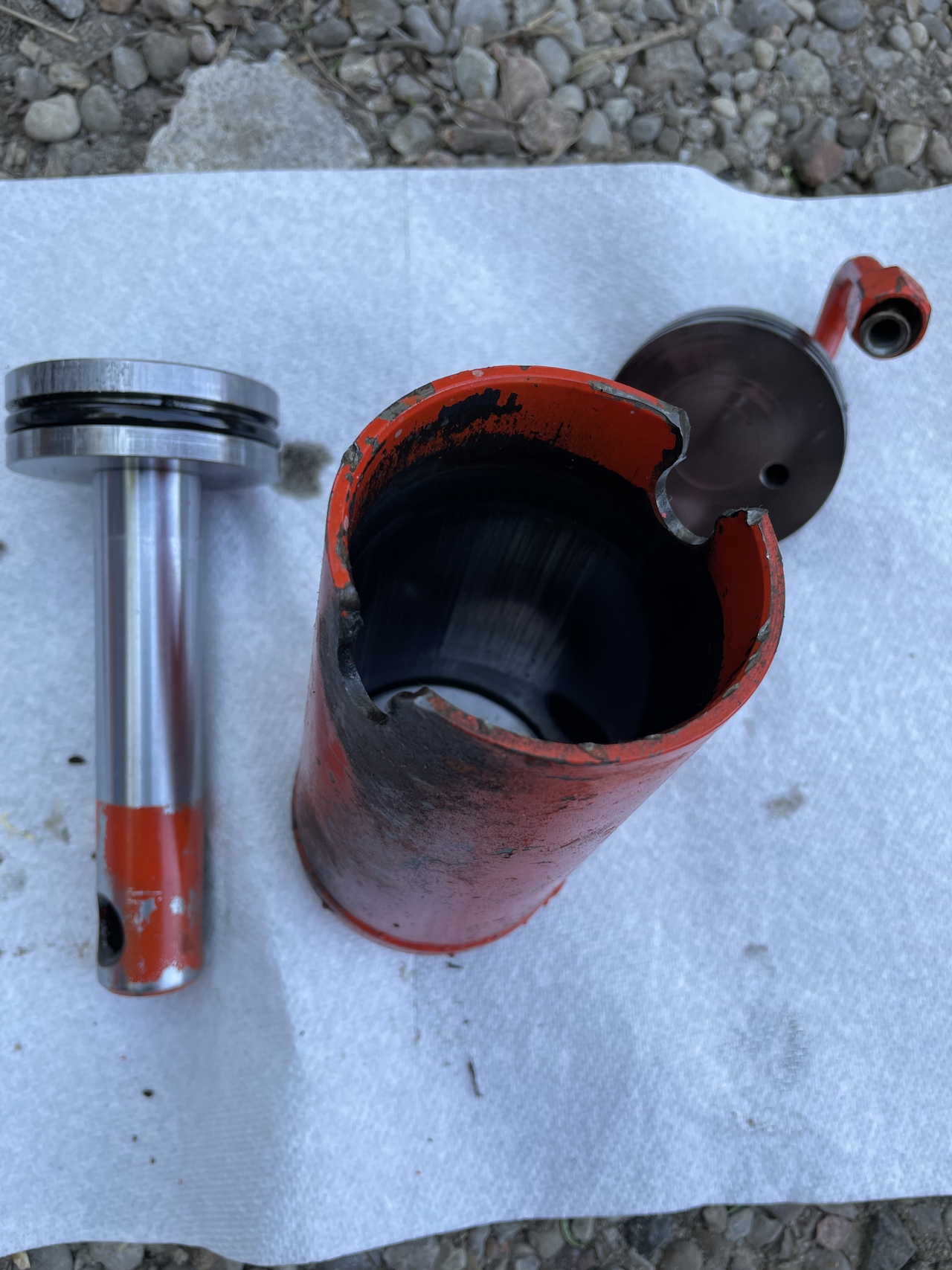 No pitting on the rod or cylinder interior, but quite a bit of scraping.