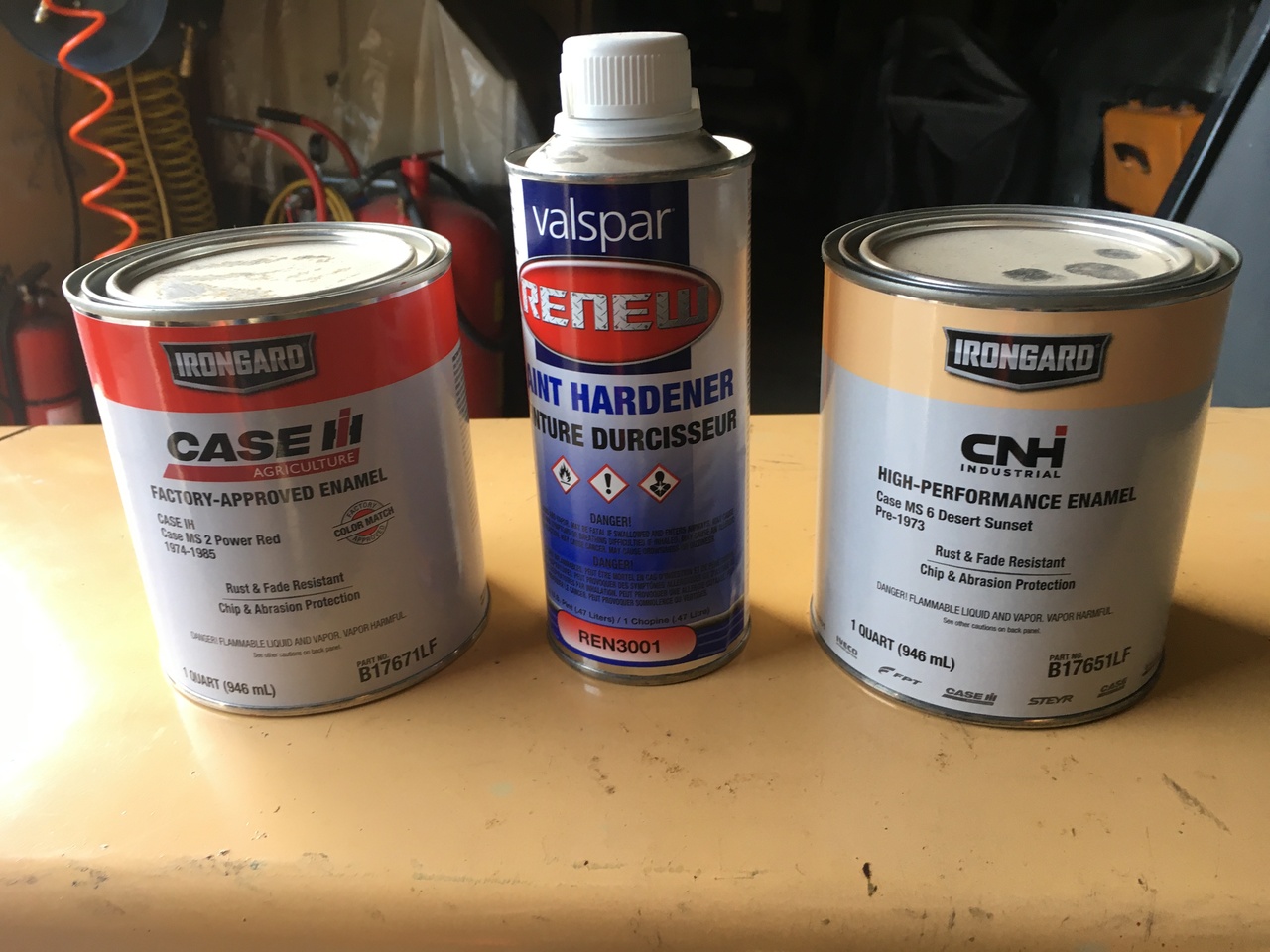 Took a trip today to the local Case Dealership which is about a forty-five-minute drive one way to get some painting supplies. I've got the 444 hood, fenders, gas tank and seat support in Desert Sunset. Some of the frame and deck parts need to be touched up in Flambeau. I also picked up the Power Red for the 226 project possibly later next year.