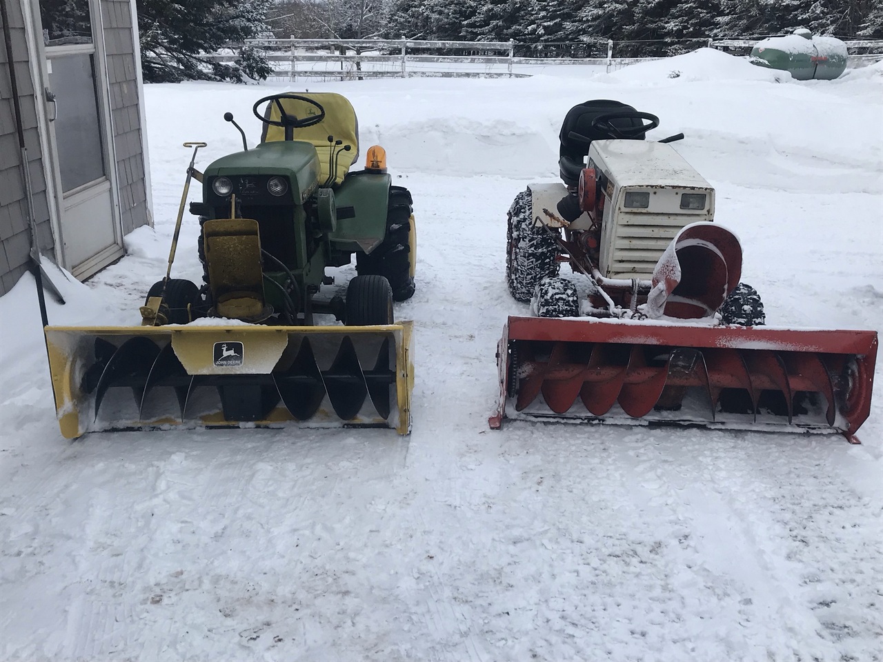 If anyone ever tells you that you take your tractors to far.....Propane57 wrote: ↑Sat Jan 15, 2022 1:27 pm Picture of two John Deere snow throwers mounted on a chev blazer. Right thrower has the same chute that my John Deere thrower has. The left thrower has the newer tall chute option. The tall chute one throws higher and a little farther, from what I can tell.