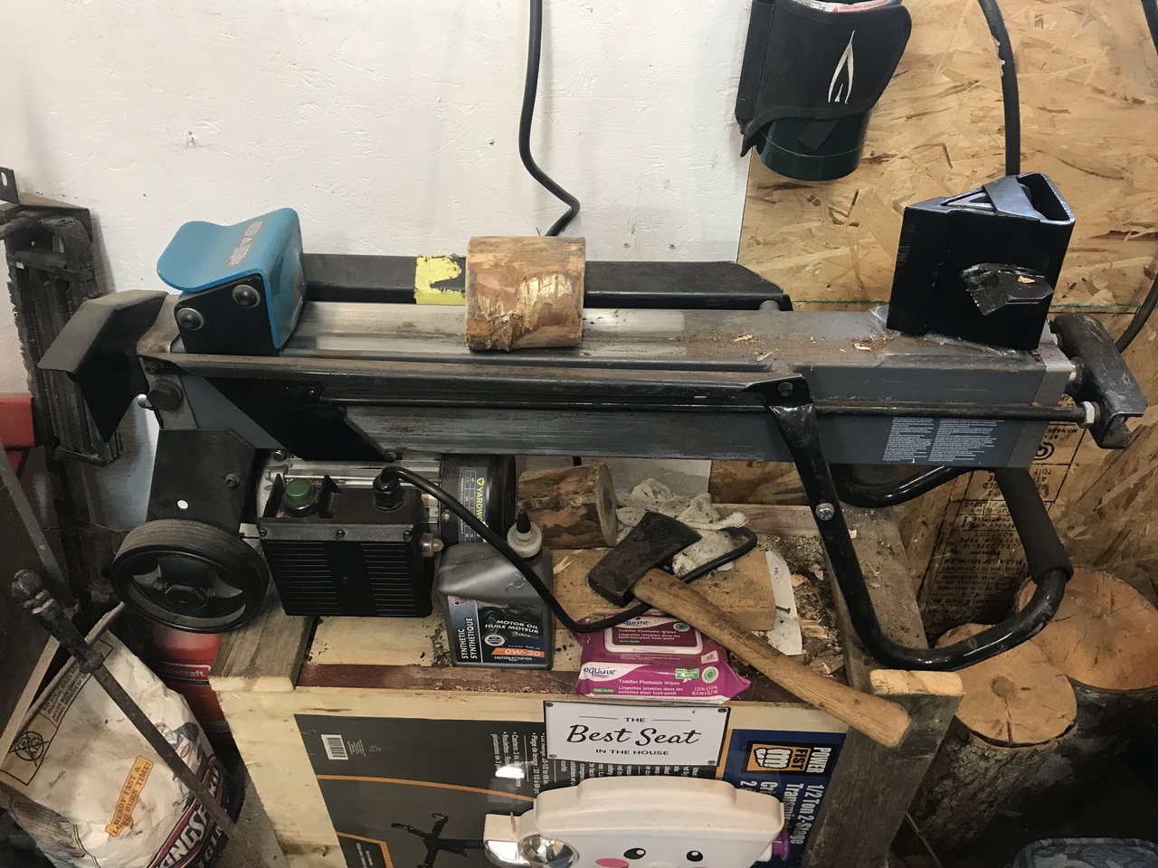 Noel could you please post a pic of your electric splitter. A friend of mine who works on small engines has an electric splitter in his shop to make some kindling for his wood burner. He has it mounted on a cart with wheels some he can move it around his shop. Split it up and store it under the splitter on the cart. I'm thinking about making one for myself.