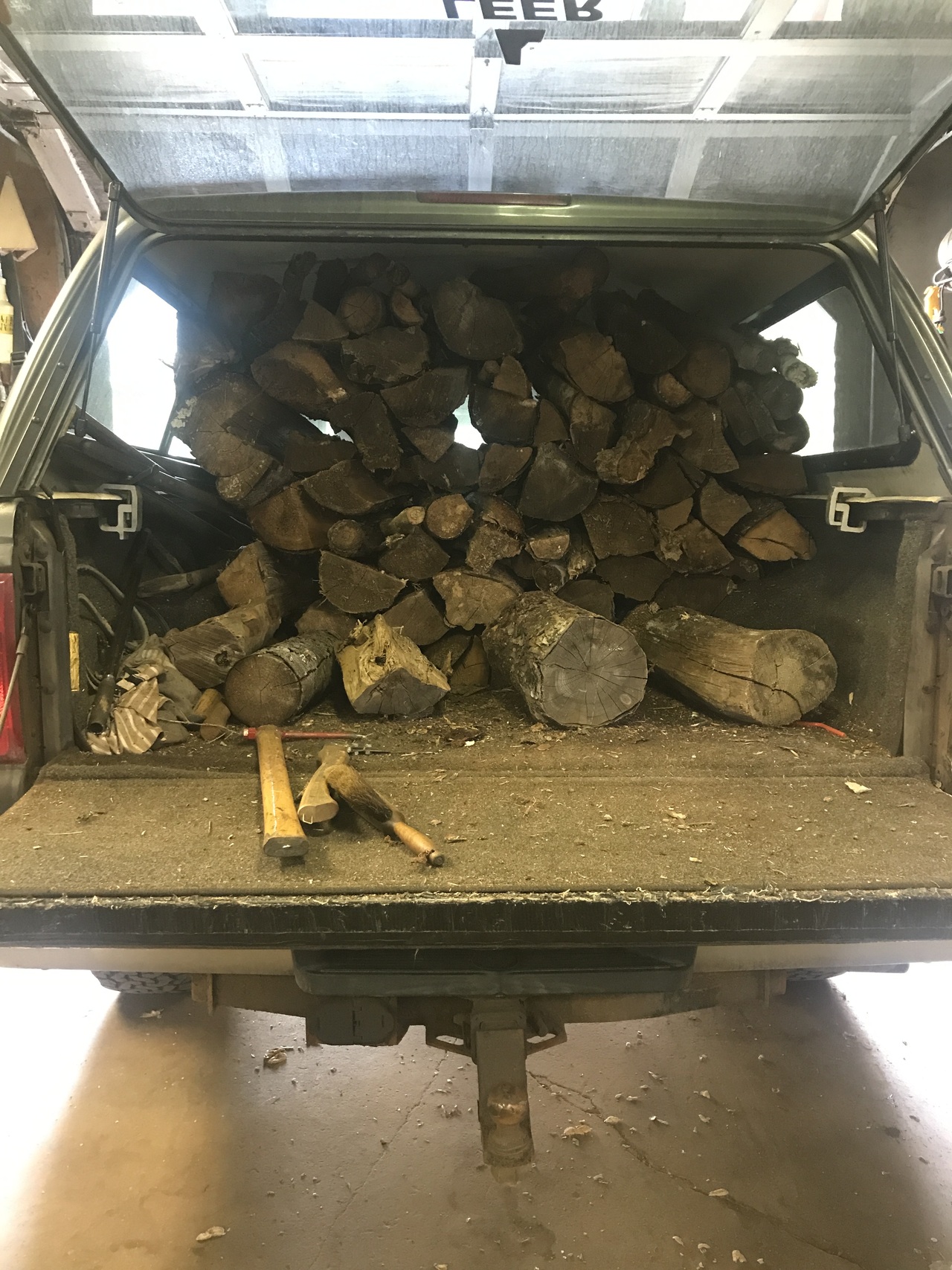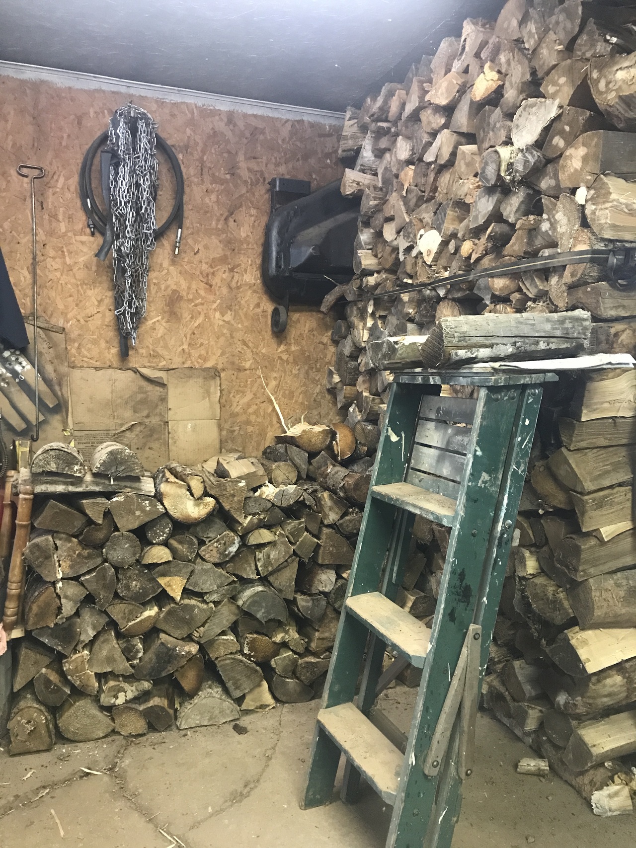 I did have to move the Case 446 out of the garage to get the wood in.