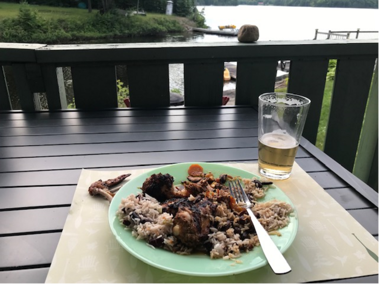 Jerk chicken, peas-n-rice and brown stew; yum yum!!!