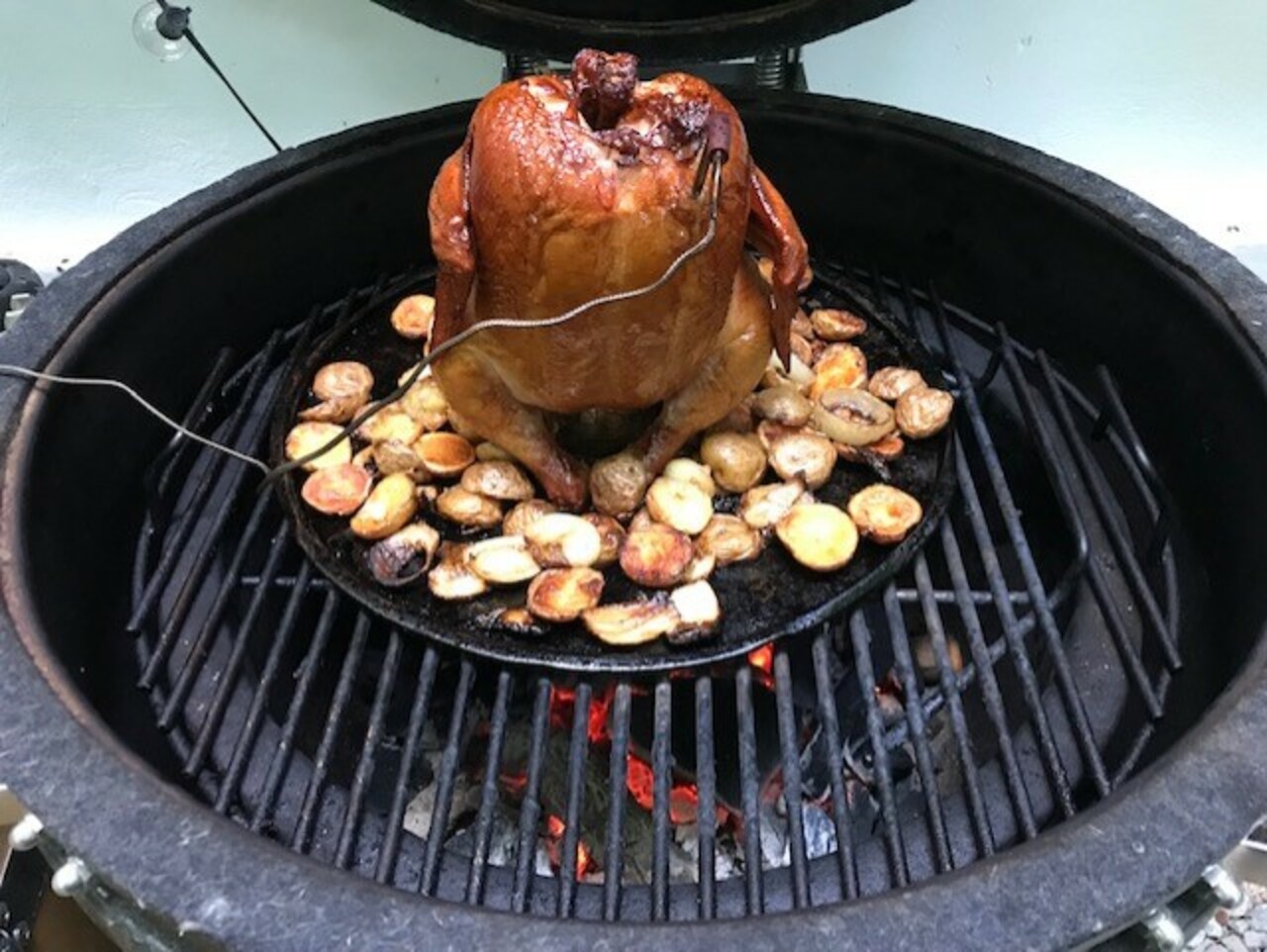 The skin was crispy and transparent. Should have taken video, when I cut into it, juice poured out. Should have tented it longer. Put potatoes in too soon too, you would think I knew how to do this by now1