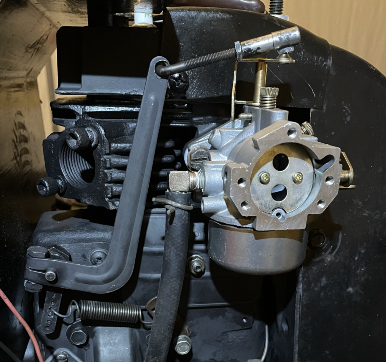 Now that you pointed it out I can clearly see that the linkage isn't parallel to the x-axis of the tractor, far from it. Looking for the right carb for this tractor now. Will post progress.