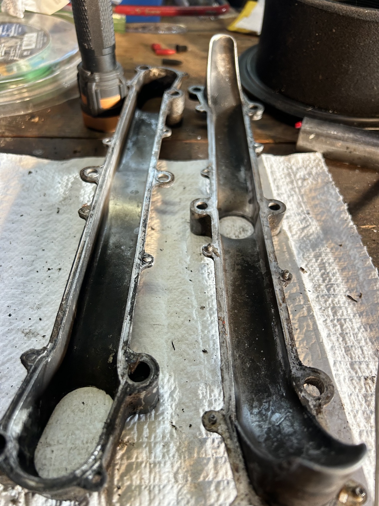 I cleaned up the surfaces and made sure everything would go together easily. I decided to run Permatex grey on it and then go ahead after it cures and put a bead of Seal all over that for insurance. Is it necessary? Probably not but I don’t want to take this apart any time soon! I’d guess the intake probably gets to the upper end of the suggested heat range, but if Noel used it successfully on the lower part of his engine block then I think it will be fine. If nothing else it’ll be another test bed to see how it reacts to heat.