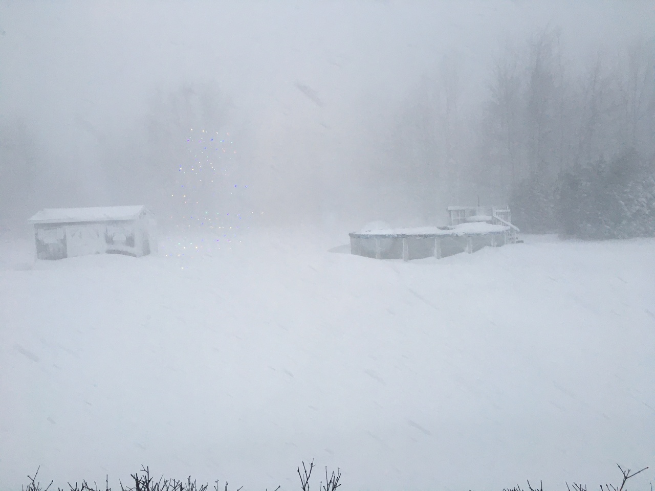 Did not get alot of snow only about 3" / 25 cm , but freight train high wind gust all day and night 35-90 kph / 20-55 mph . Every time it gust it moves the pole and sets off the motion light in the drive way . All night long . It only does that when wind speed get over 80 kph. Only Damage was a limb down out front yesterday . We wills see how things faired last night when the sun come up . All in all we were spared so far but to the north and south of us not so much based on road closers . Hope you guys all made out ok .