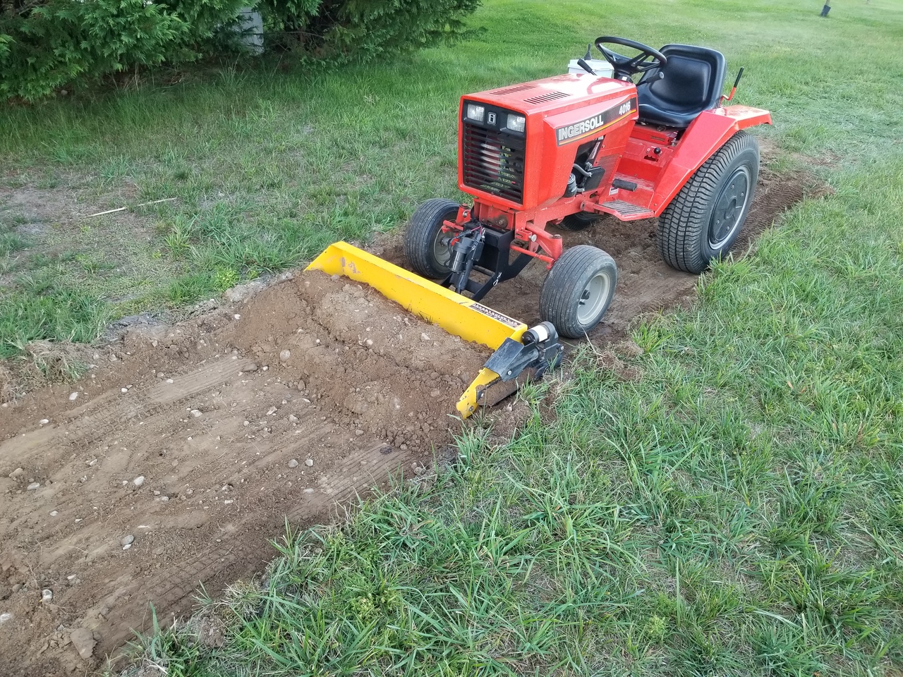 I had another 8 yards of loam delivered yesterday. While working to spread the loam, the right rear tire broke loose a few times and kept out a low squeal. I'm still working to find the limit before that happens.