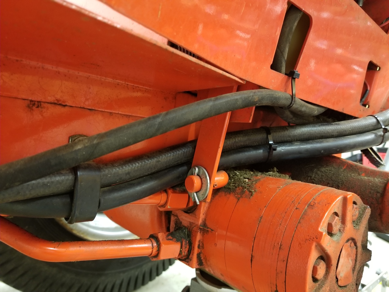 I rerouted my rear PTO case drain a few weekends back so that I can get my tractor into low range without laying under my tractor pushing the hydraulic lines out of the hi/low range lever. My tractor has the webbed backhoe transaxle and ideally should have the under seat PTO but it doesn't... so the hydraulic lines have to route around the side a bit. In the past I've tried securing the lines together with zip ties but eventually the hydraulic lines move around again. Figured I'd try moving the case drain line. Works for now...
