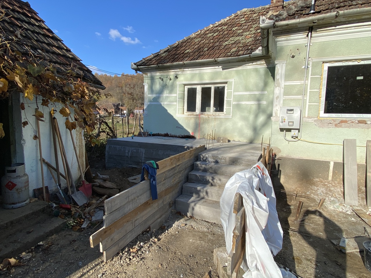 No wood construction here, all masonry. Septic and water well still not done. I've mixed and poured lots of concrete.