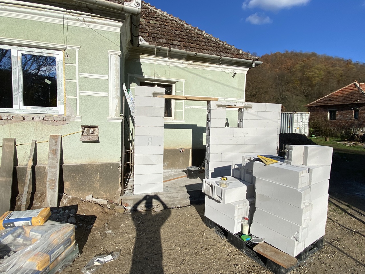 People here build houses either with this white block or large ceramic blocks full of holes, like this