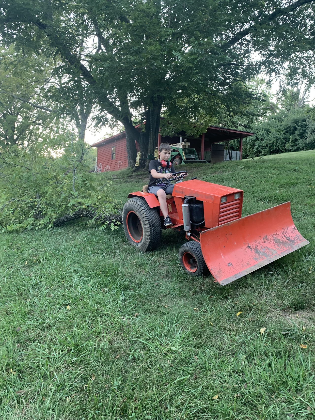 I needed to move the tractor out of the way for another project today. Son wanted to be the test pilot. He drove around for a little while learning the controls. We changed the engine and hydraulic oils too.