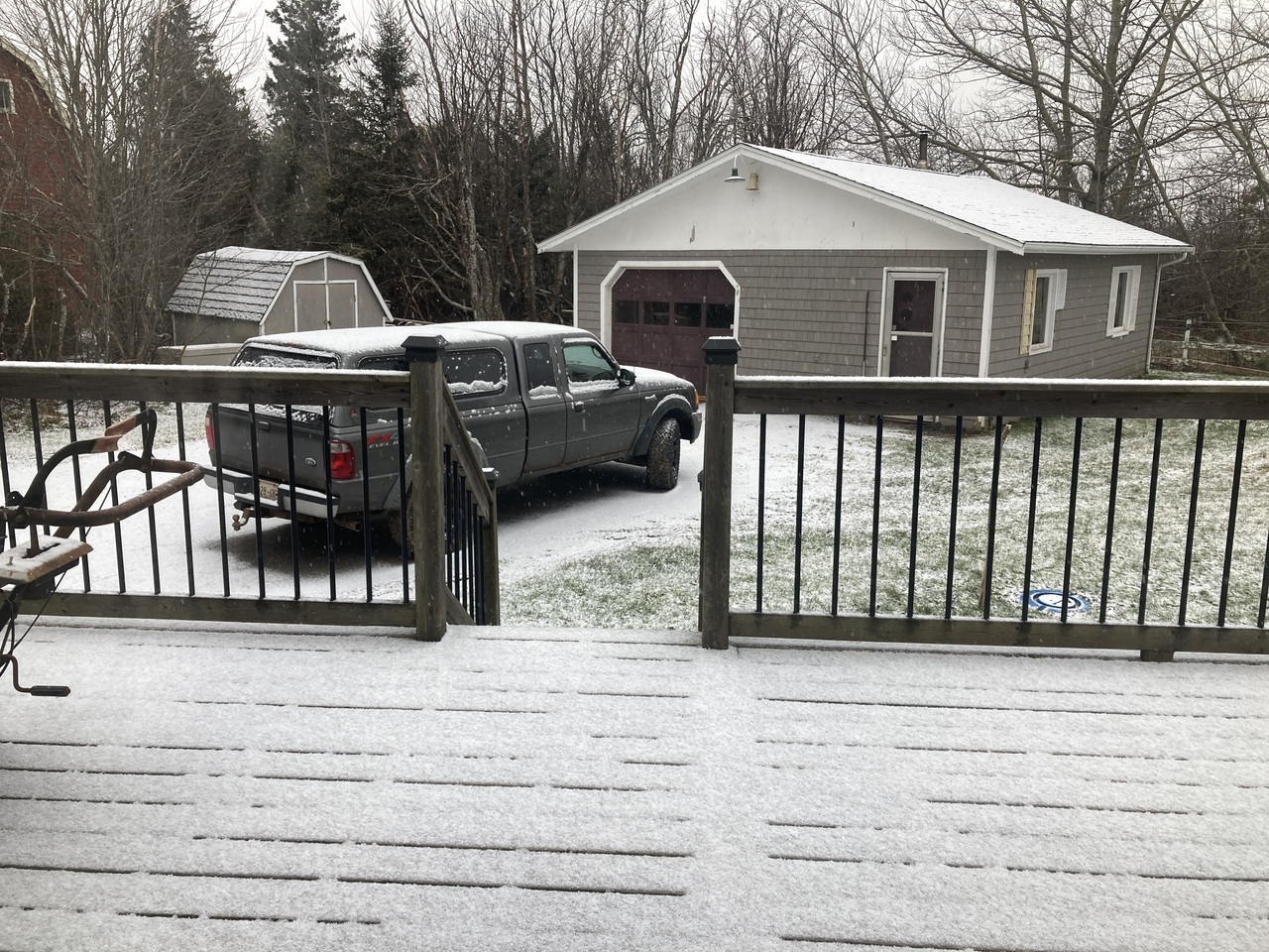 Well after thinking it was gunna be a green Xmas for the last two weeks, it’s a whiteish one. Snow started and suppose to go all day. Very little mind you, but it is making things white.