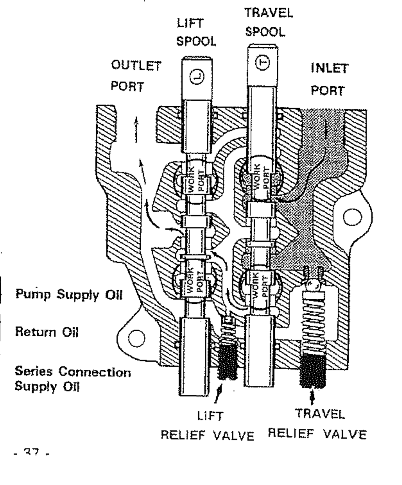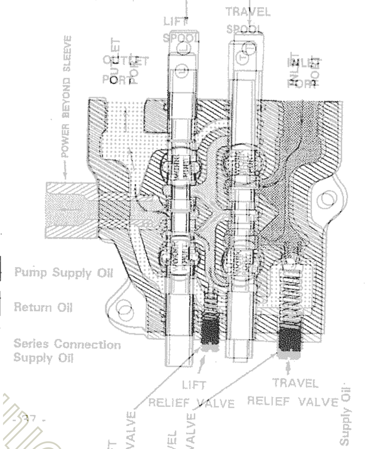 What if you had a TCV with a power beyond port? That still wouldn't work, because any time you had the travel lever is outside of "neutral" the power beyond port is "dead". You have to return the travel lever to neutral before you can use the loader valve. It's not as bad of a problem as locking up your rear wheels any time you pull a loader valve lever, but it's still going to be frustrating, probably to the point of "uselessness".