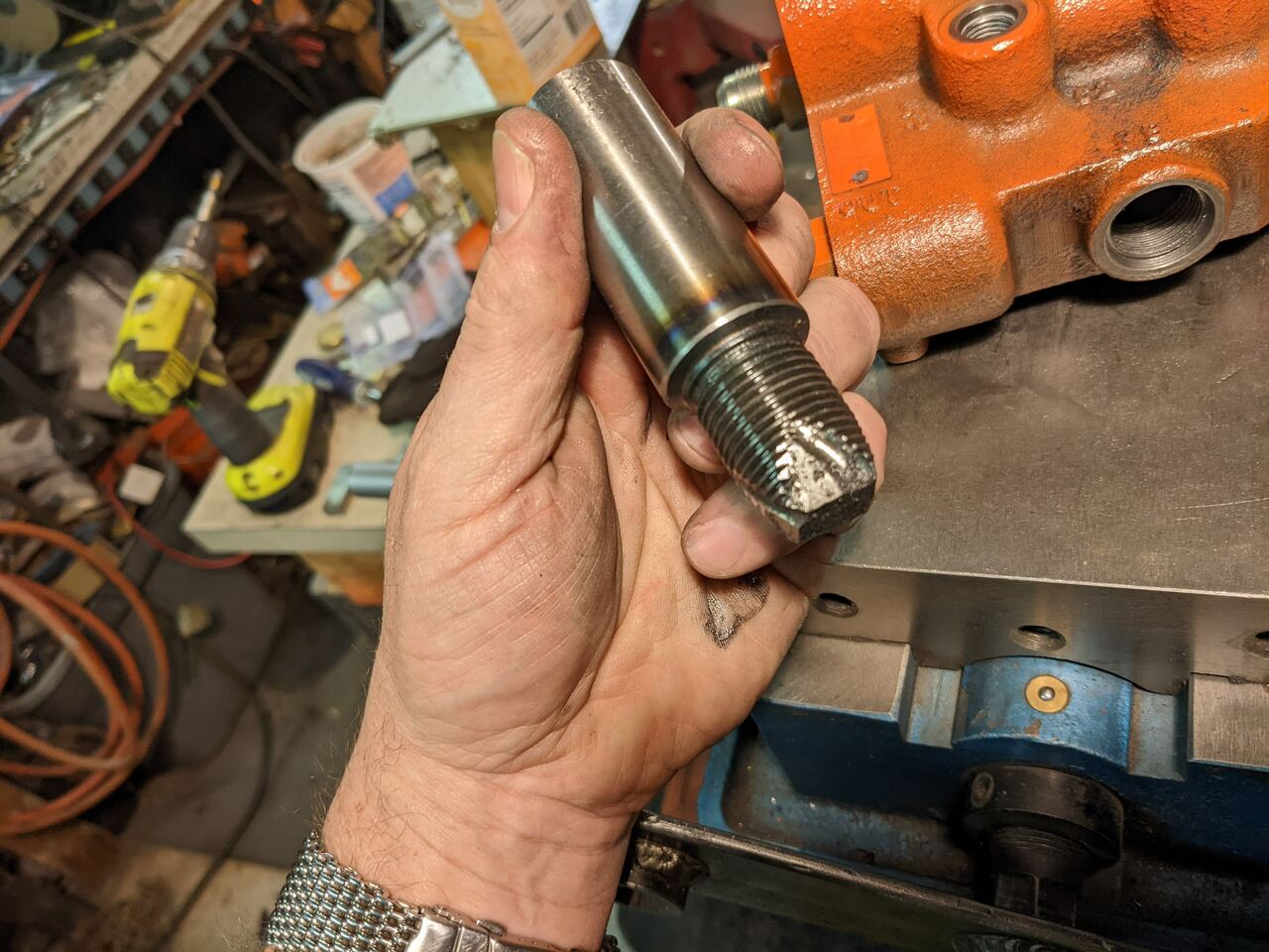 Everything screwed in without any drama, though it was fairly tight. I'm not certain, but the o-ring may have hung up on internal obstacles and gotten cut. Time will tell when I pressure test it. The steel of the plug itself is also screwed tight into the beveled seat, so the o-ring may not really matter that much anyway. As long as I can get full 2000 psi+ at the point of my new spool valve, I'm happy.