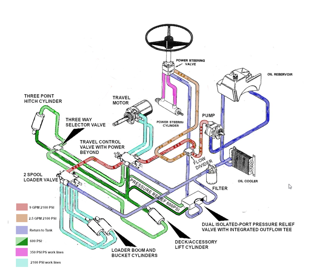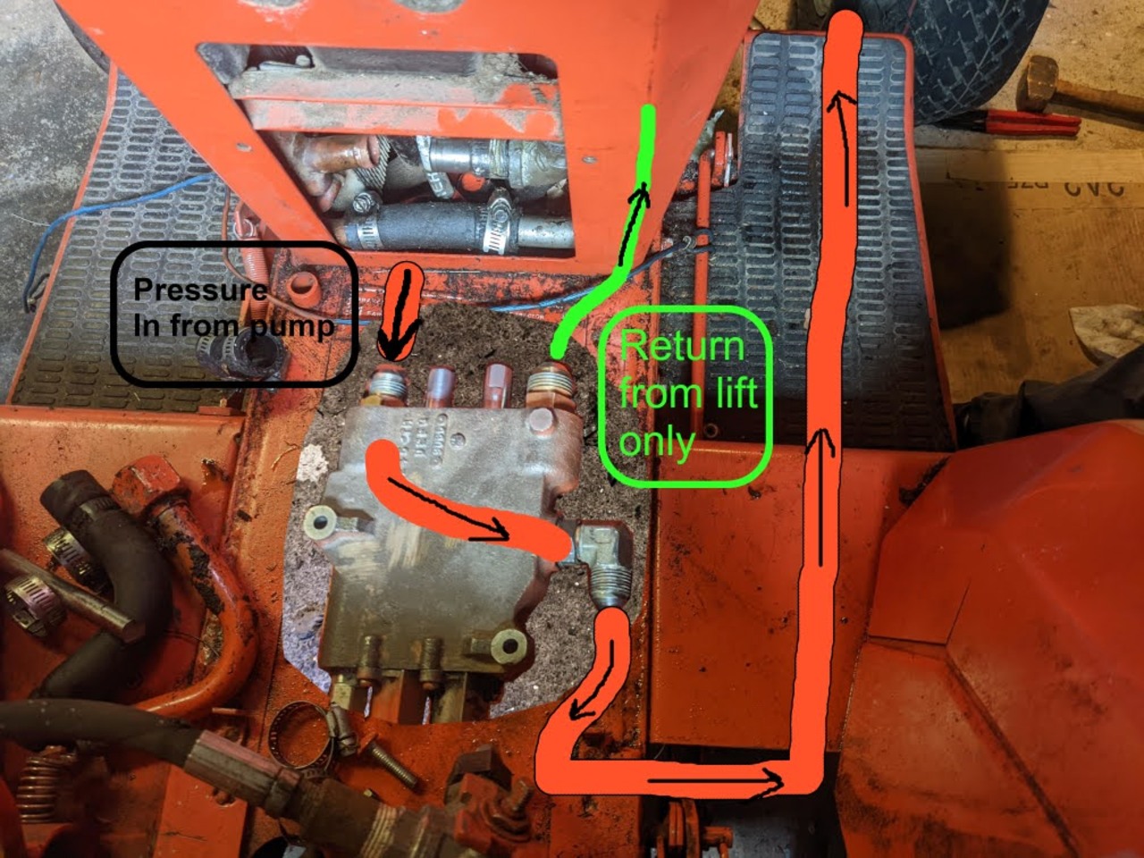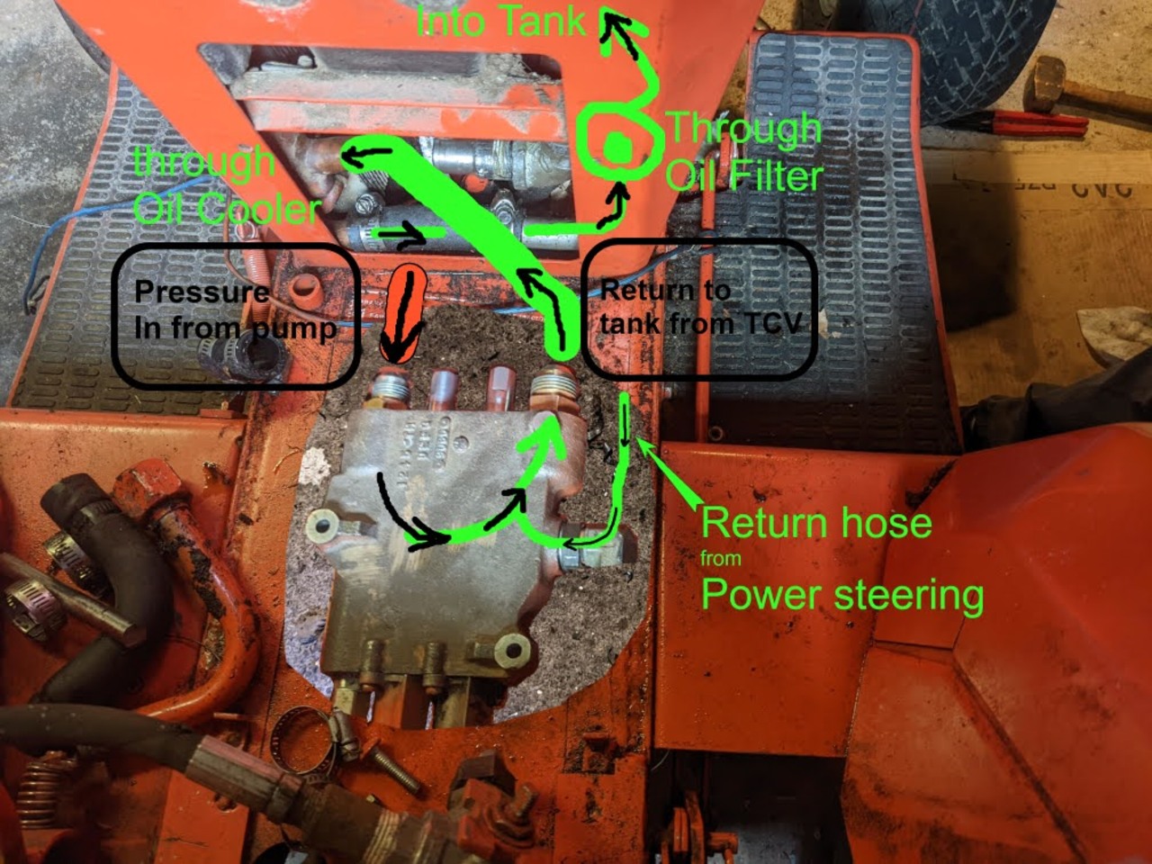 What if I just installed a selector just upstream of the new splitter valve. That selector could direct the flow EITHER to the splitter valve scenario OR straight to the original TCV. That way, with the loader removed and the selector set to "normal", the tractor would be just as if it never had a loader valve on it. But with the loader installed and the selector set to "loader" then the flow gets split, some to TCV, some to the loader.