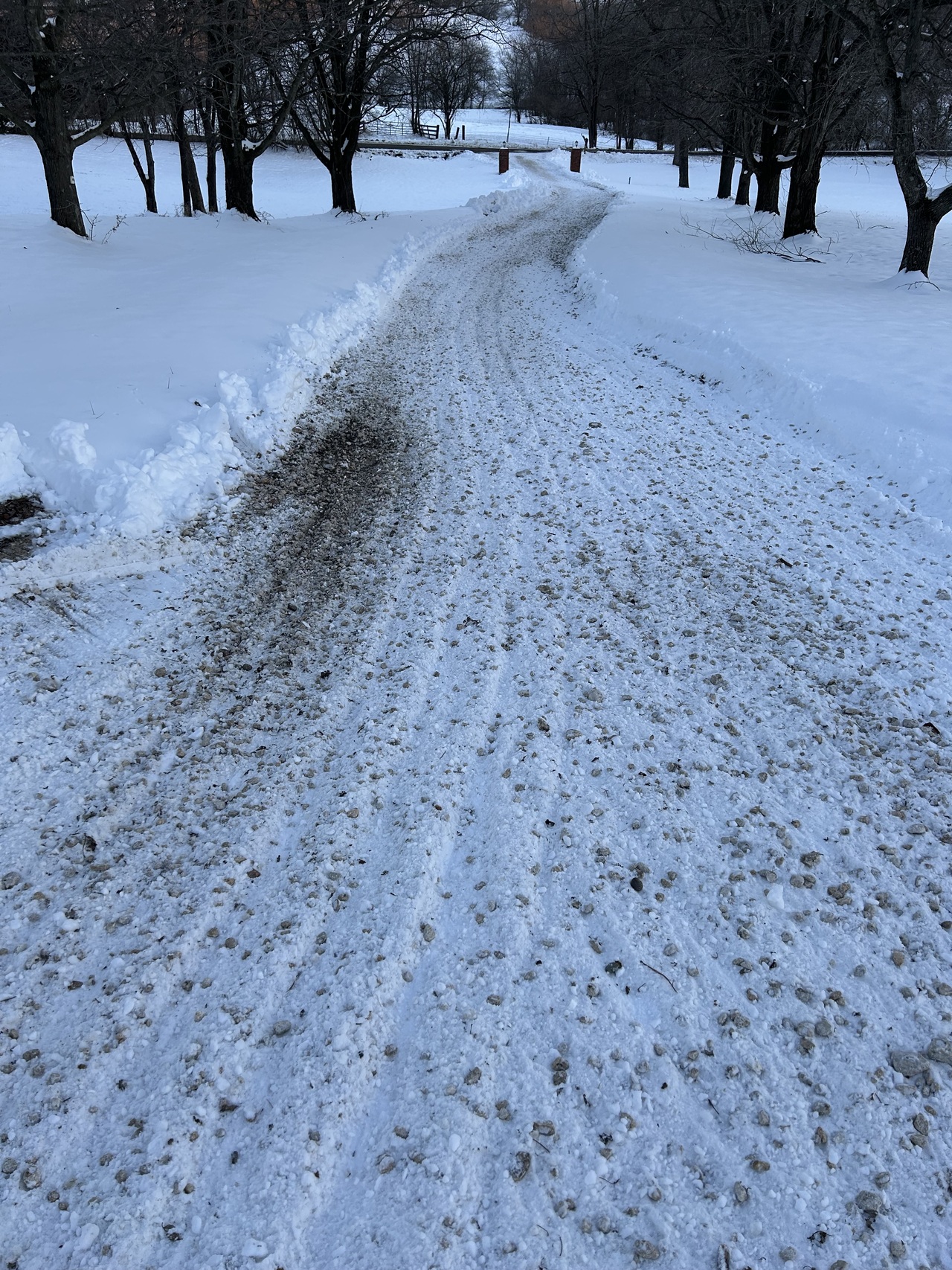 So I went with the 2” pipe as you can see in a lot of pictures I’ve posted. This last snow we had was a really good test and I can report I’m happy with the performance. It pushed well without getting into the gravel underneath. So I think I’ll be sticking with this. The only issue I see is I tend to end up with a very slick hard pack when I’m done. The problem is our weather here never stays below freezing for long. So we go through thawing and refreezing sometime daily. Just makes what’s left icy. My solution to this is to just use an old section of harrow and drag the driveway to keep the ice broken up. Seems to work pretty good. If we were in a colder climate I suppose I would be more worried about making more of a base to drive on for the season.