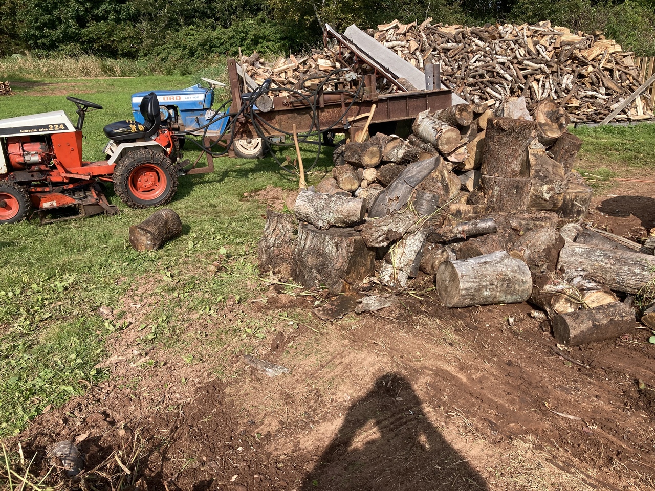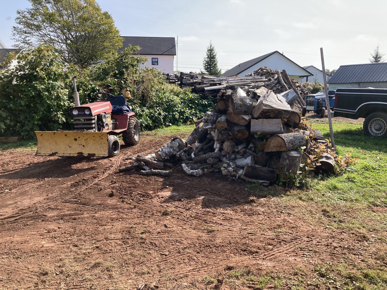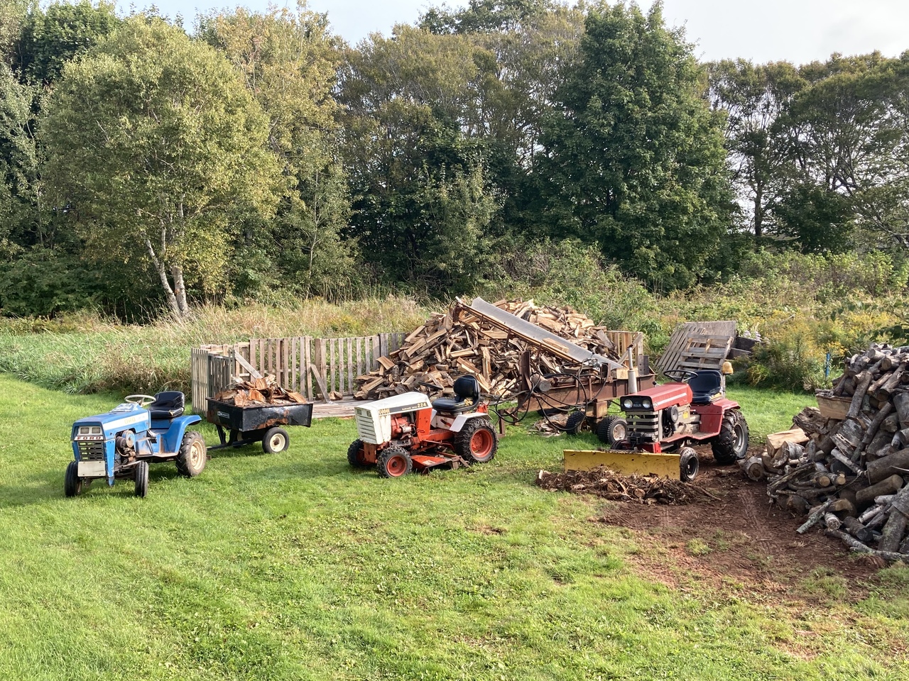So progress has been made, still working at the Fiona wood. Nice week this week so I hope to keep at it. Would be nice to be younger and able to stay at it longer each day, but just lucky I can do it. Three tractors in use today.