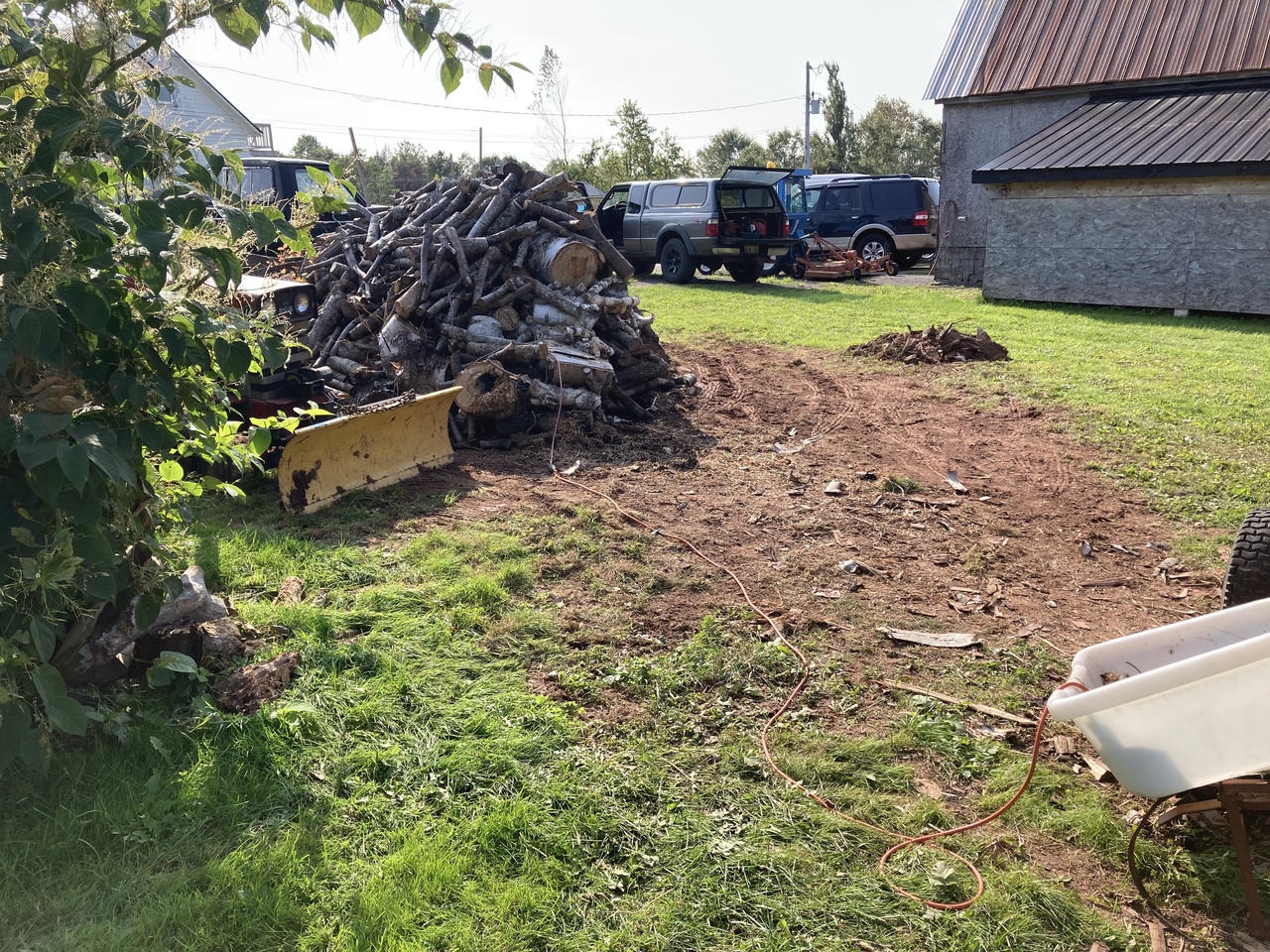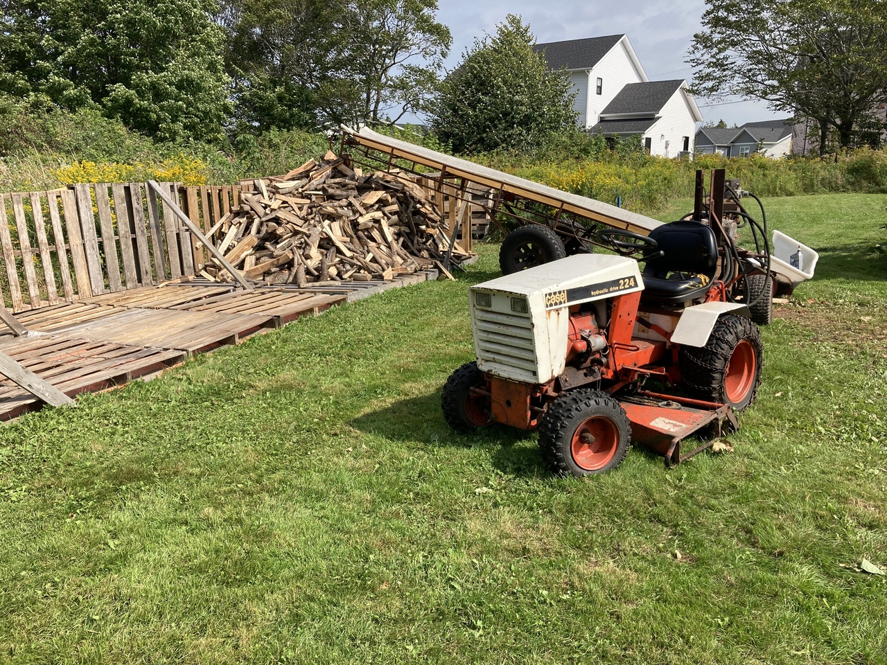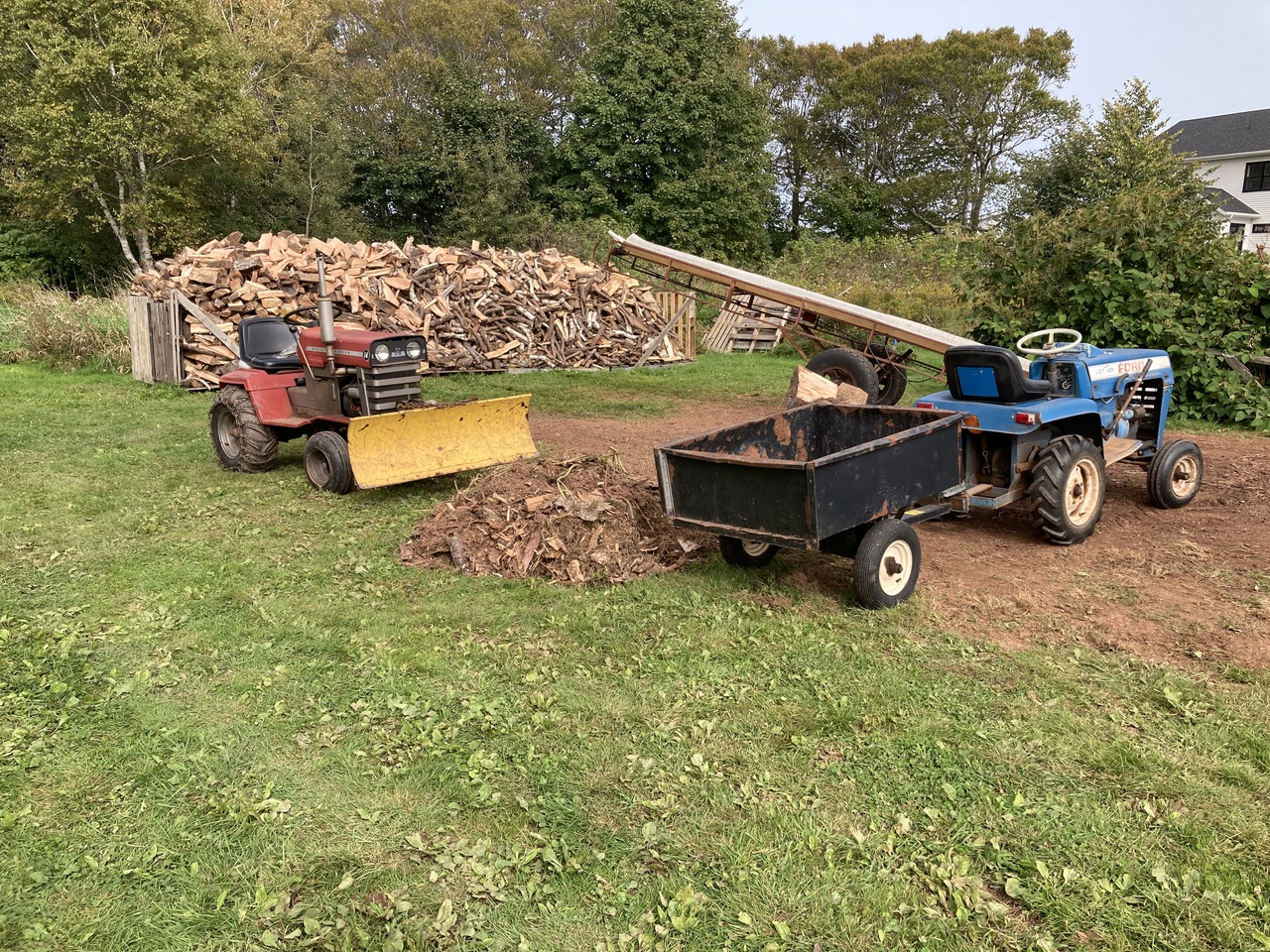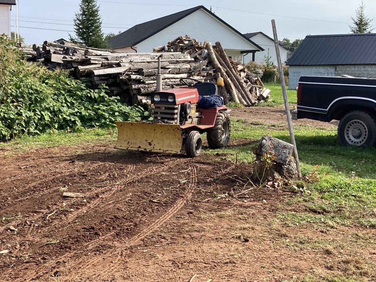 So progress has been made, still working at the Fiona wood. Nice week this week so I hope to keep at it. Would be nice to be younger and able to stay at it longer each day, but just lucky I can do it. Three tractors in use today.