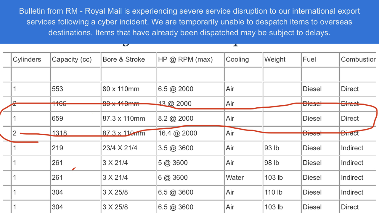 In that case, a 659cc diesel engine will have torque at 2000 rpm, no joke, more than the 16HP Onan, would be my guess! OK, now it makes sense.